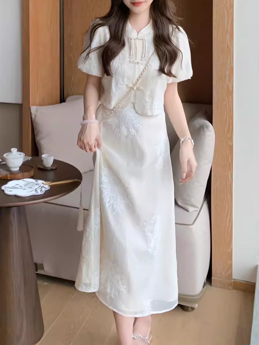 新中式轻国风上衣佛系清冷感禅意风改良旗袍裙连衣裙女夏装两件套
