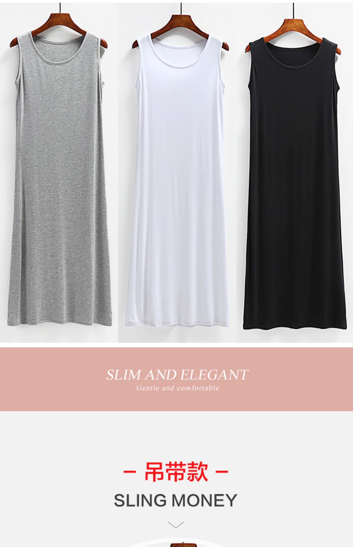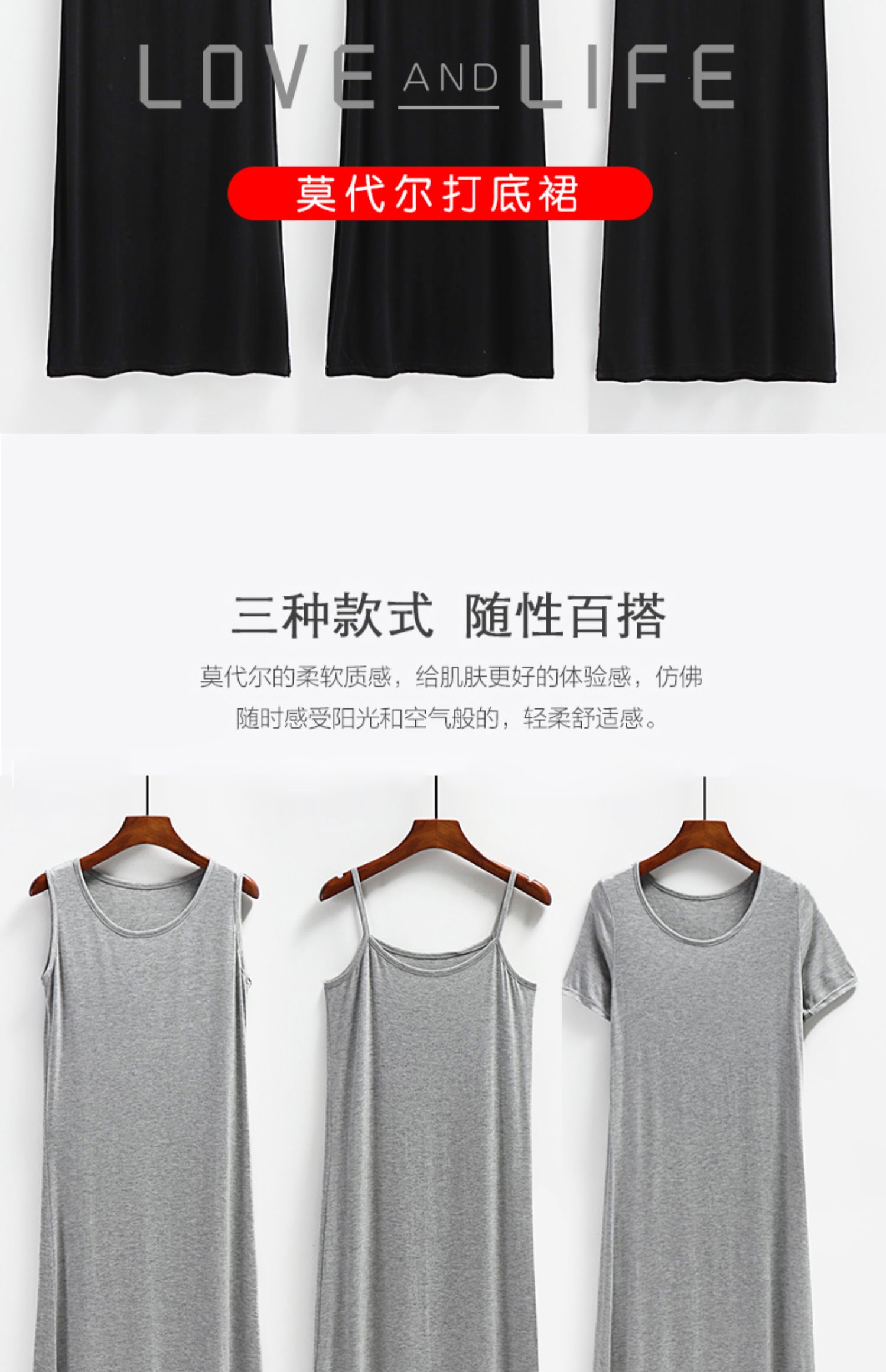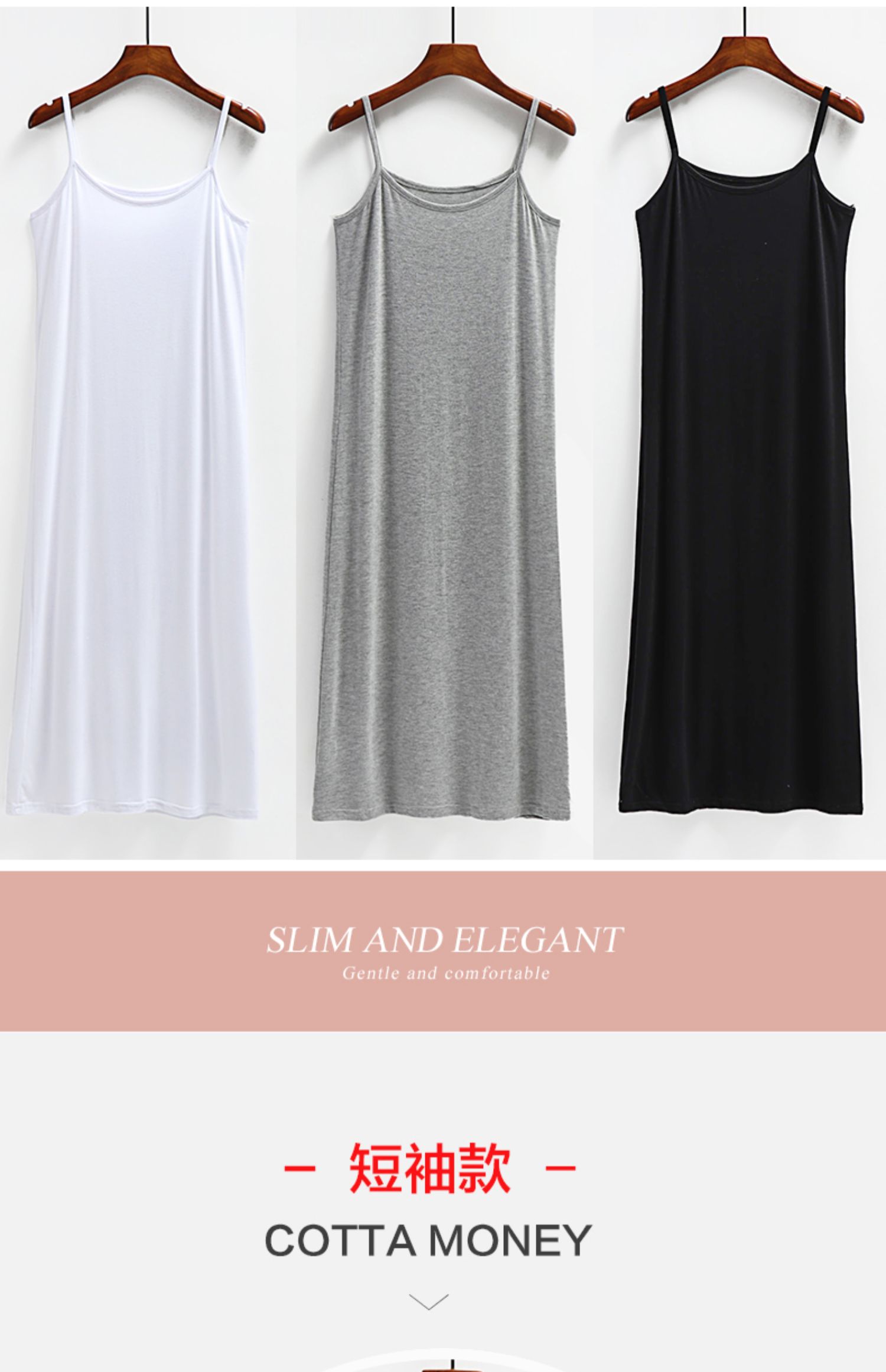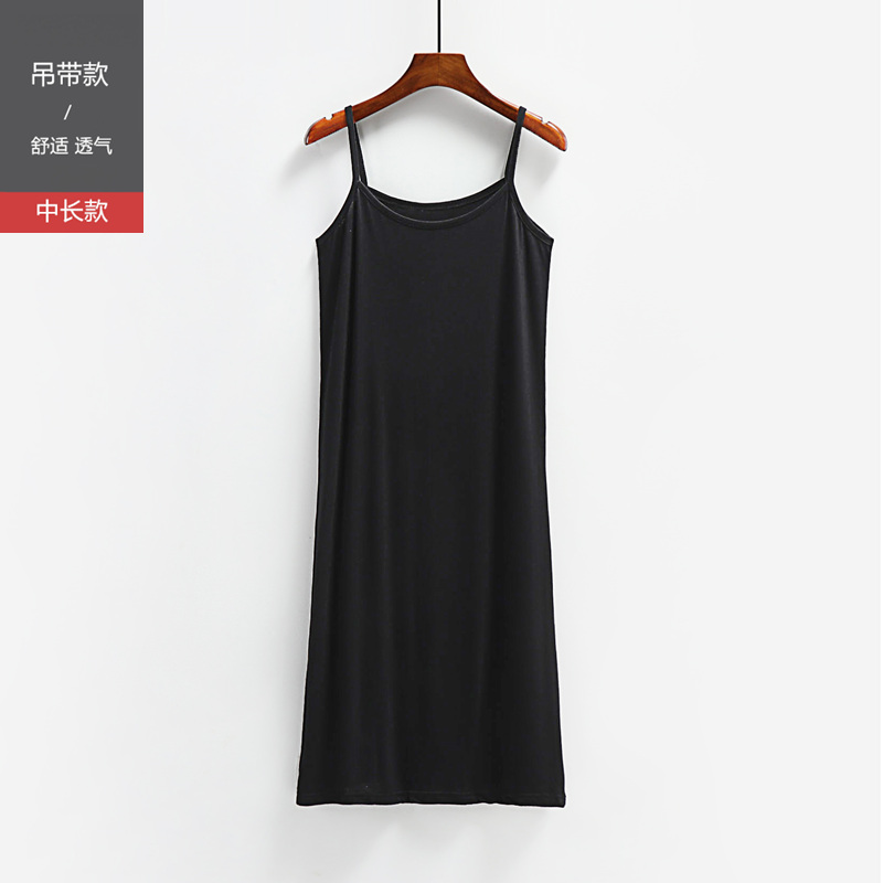 夏季莫代尔吊带连衣裙女内搭打底裙黑色背心长裙春秋短袖a字裙子