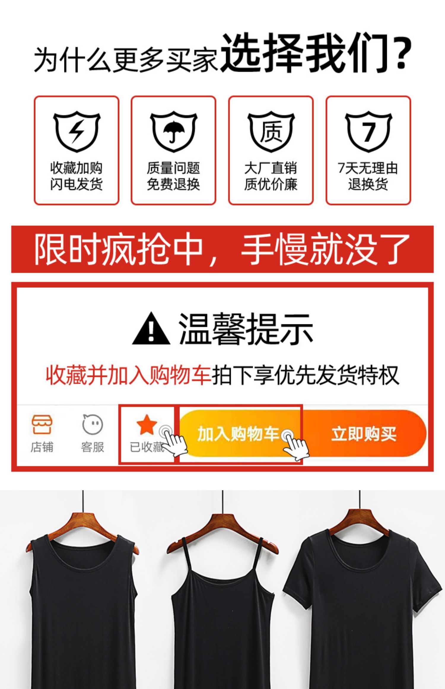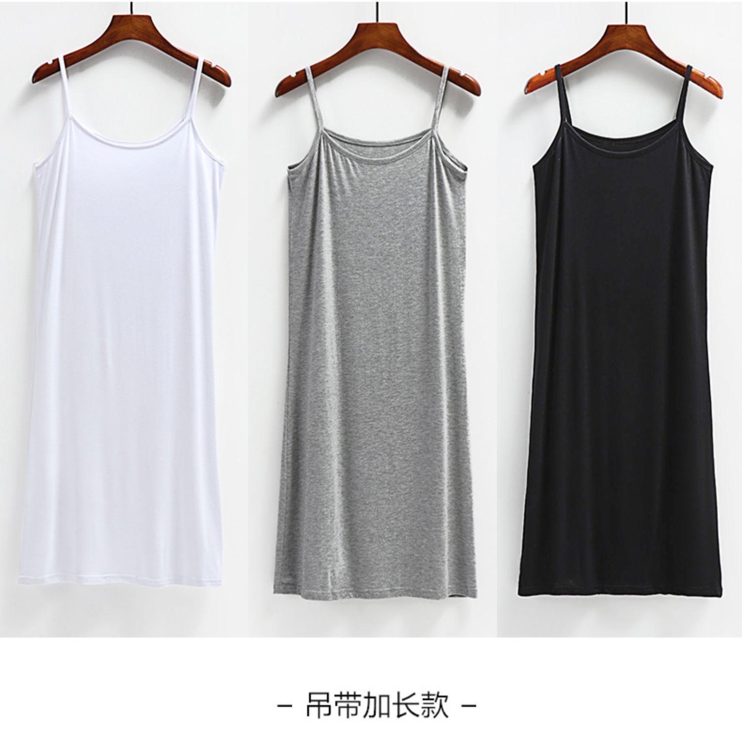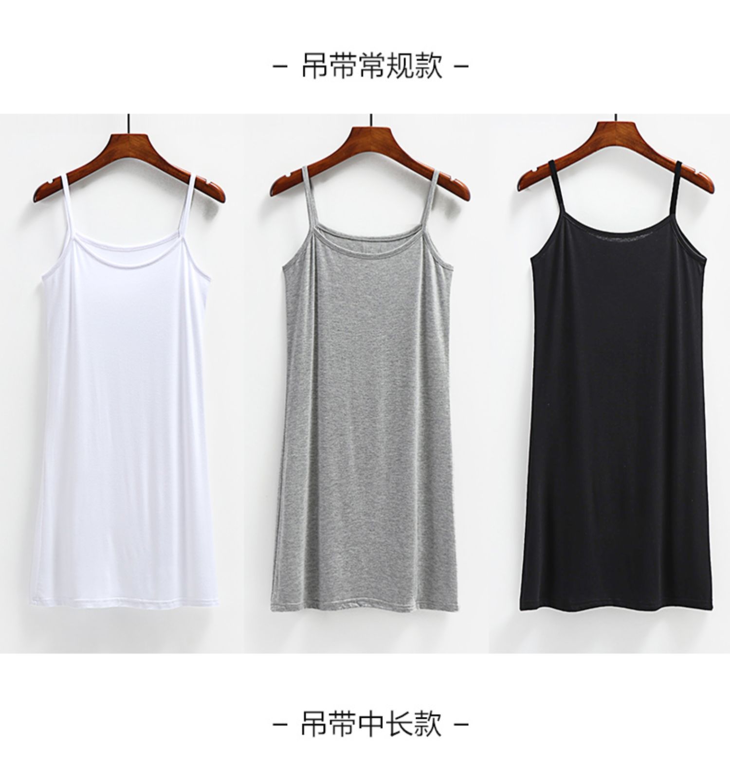 夏季莫代尔吊带连衣裙女内搭打底裙黑色背心长裙春秋短袖a字裙子