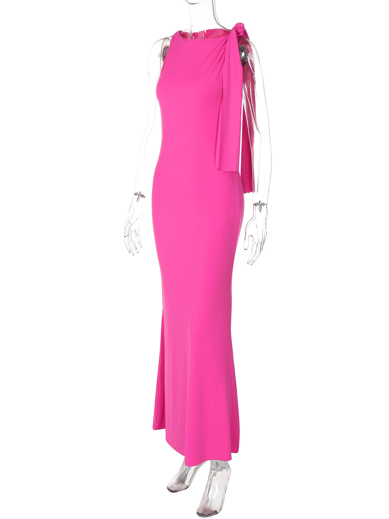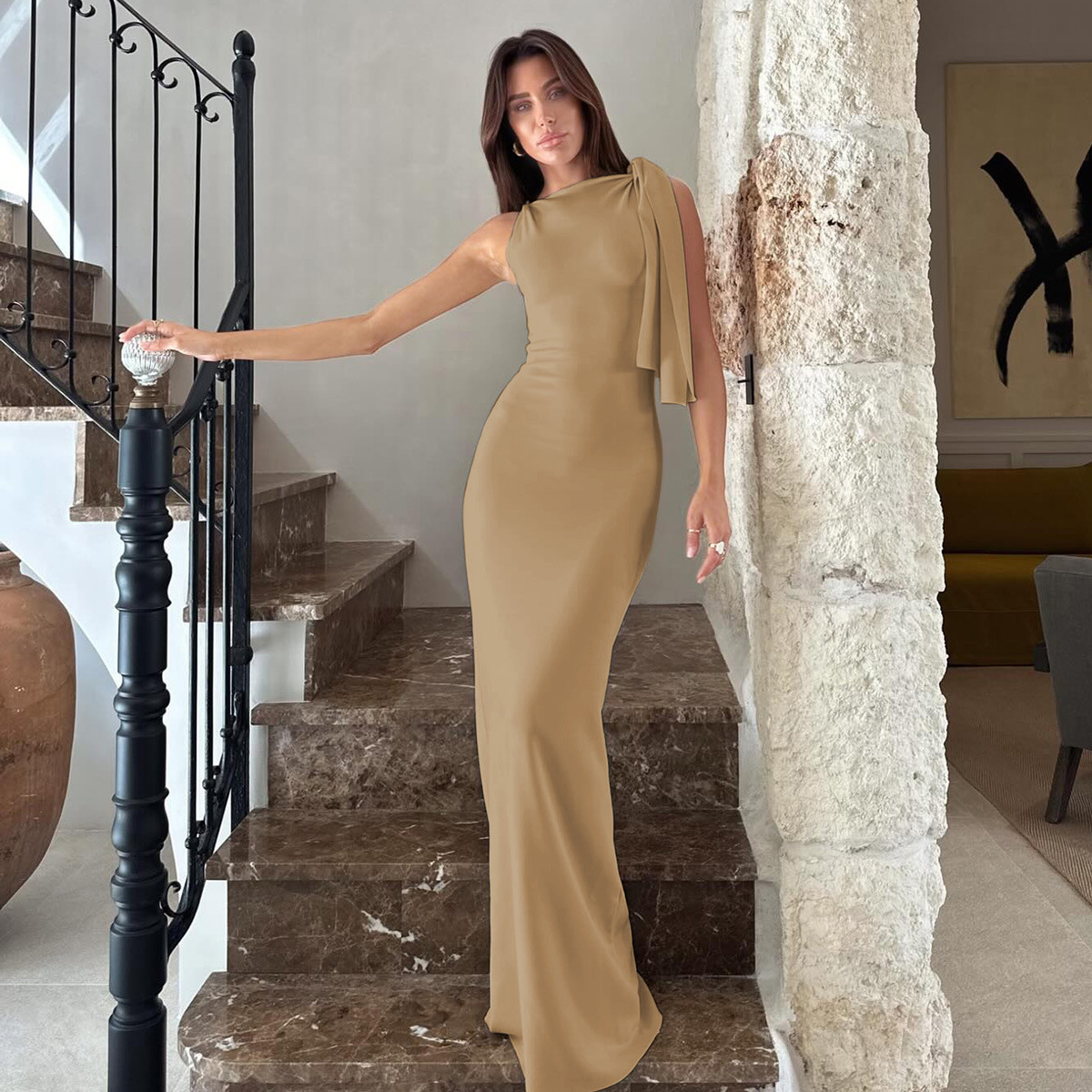 亚马逊热销女装2024夏季新品时尚气质单肩飘带纯色连衣裙外贸批发