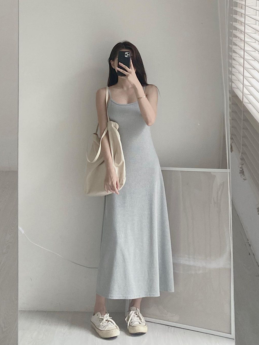 法式显瘦包臀长裙辣妹吊带外穿连衣裙女2024夏季新款内搭背心裙子