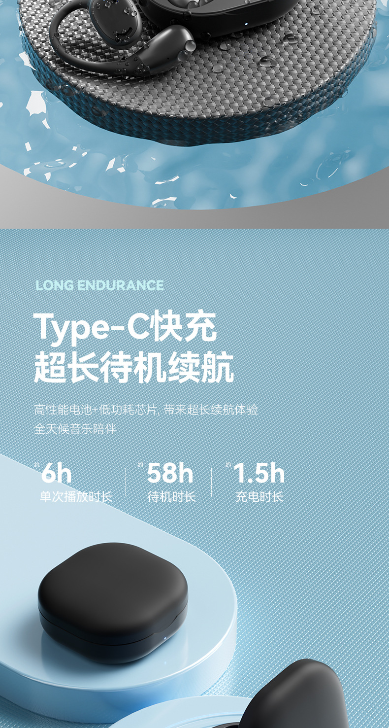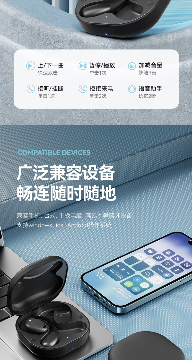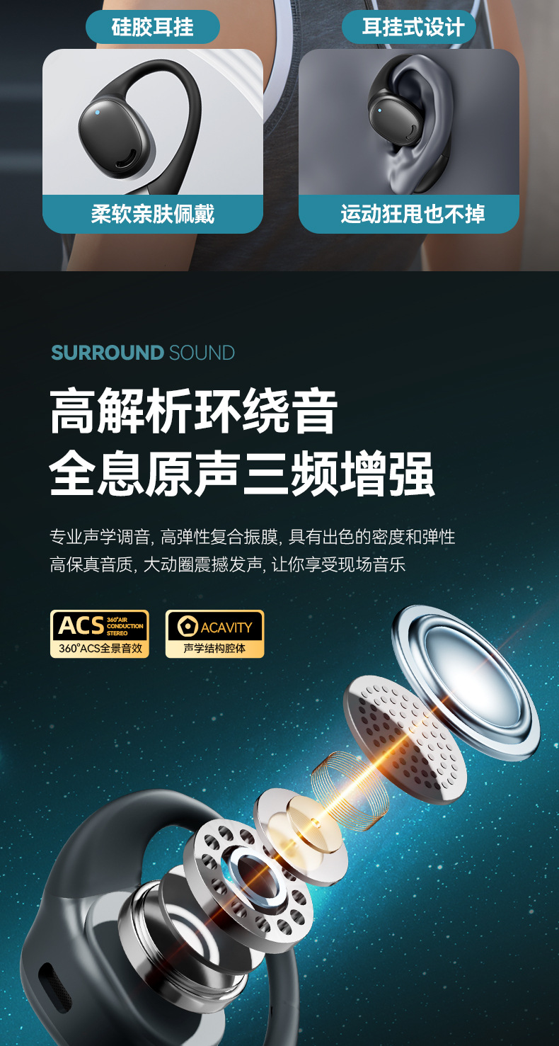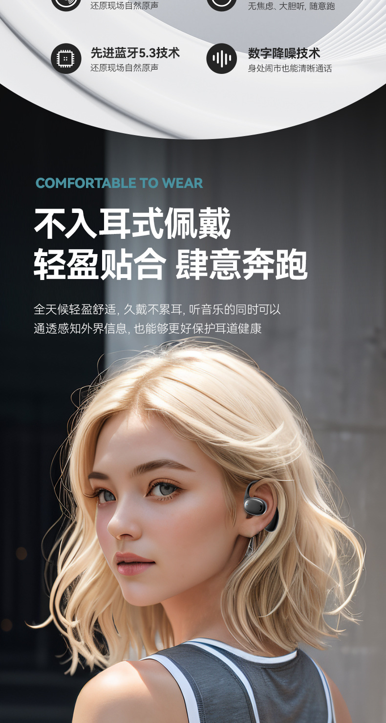 【2024爆款】M56挂耳式触控OWS真无线蓝牙耳机骨传导运动跨境电商