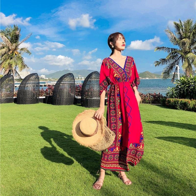 云南大理旅游拍照衣服民族风连衣裙泰国海南三亚海边度假沙滩裙女