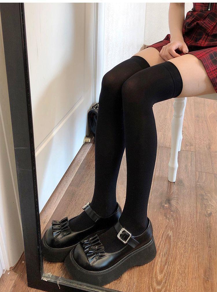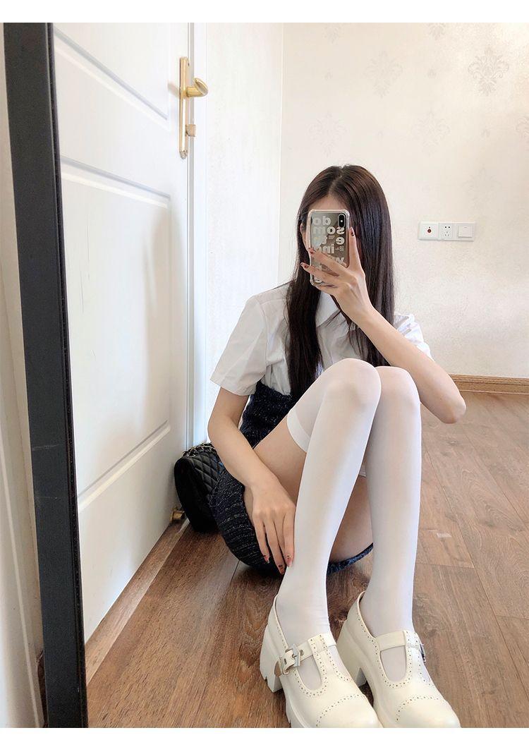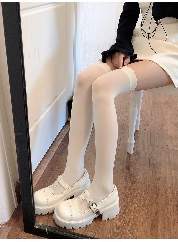 过膝袜白色女透明天鹅绒袜子打底女日系白丝长筒袜黑色jk过膝丝袜