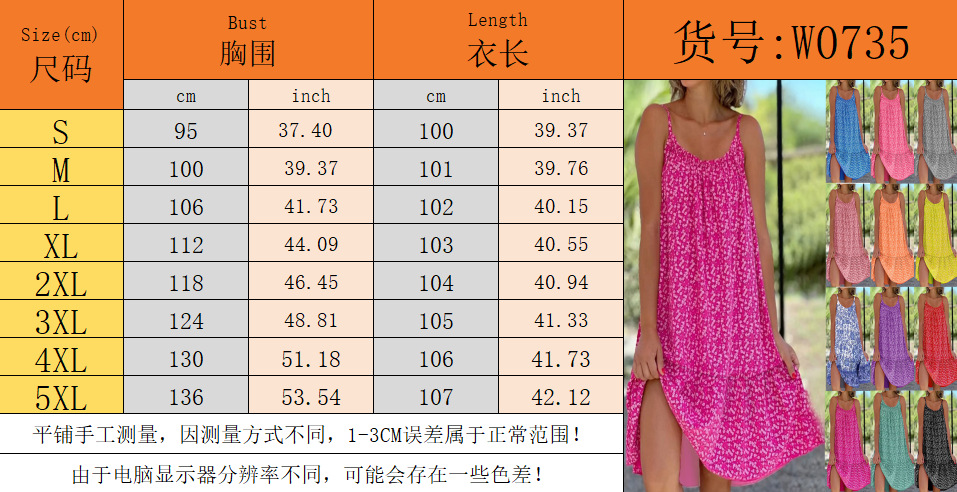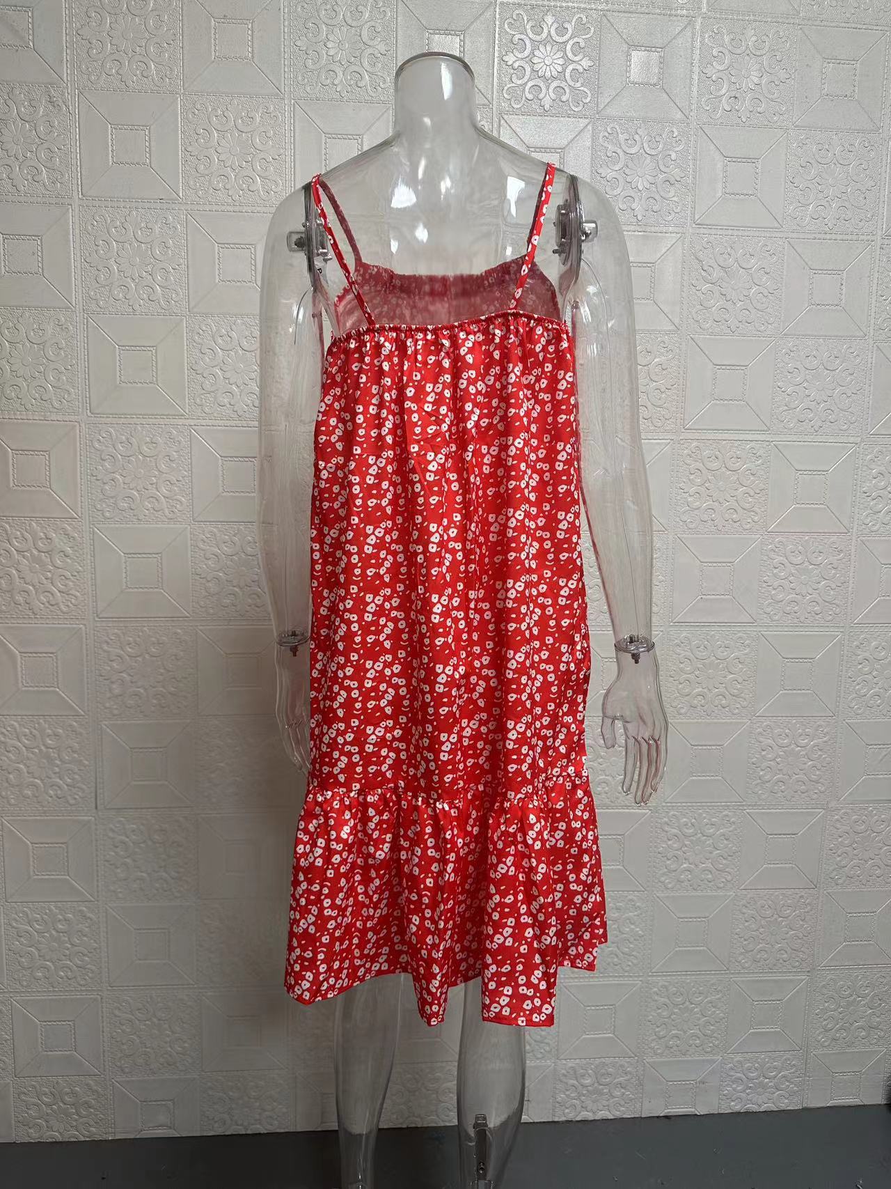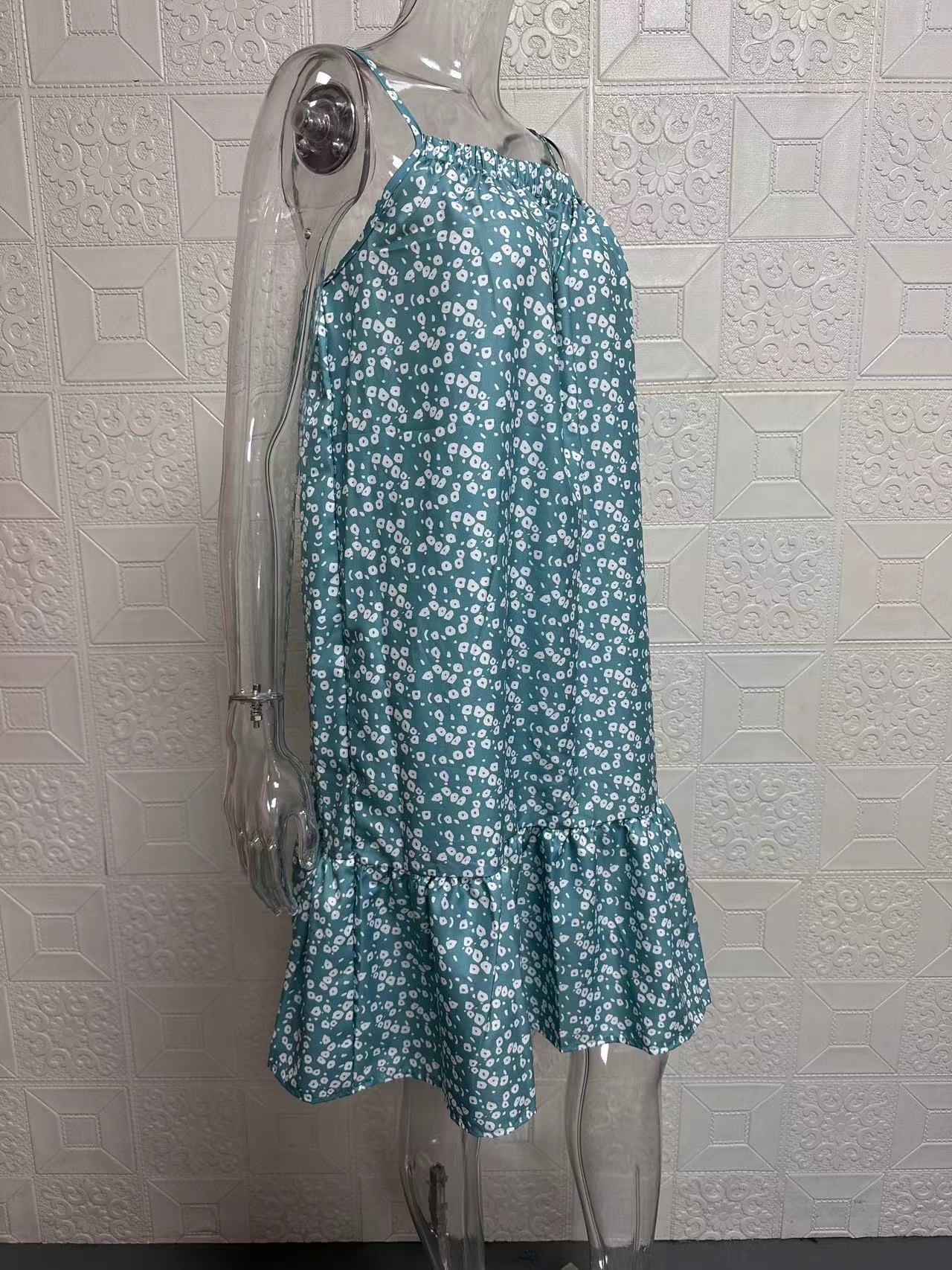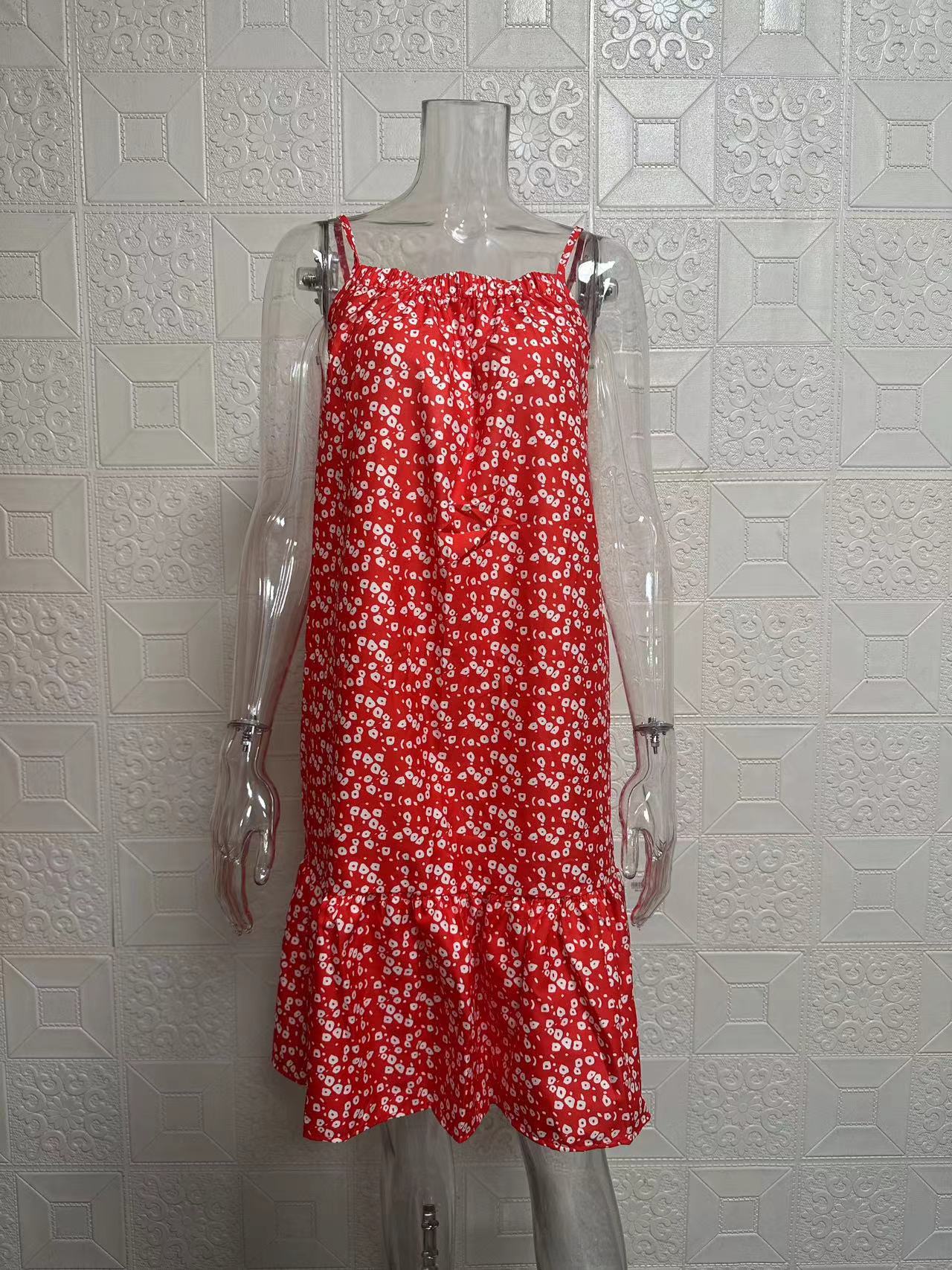 2024夏季新款 亚马逊wish欧美 田园风大摆碎花无袖吊带马甲连衣裙