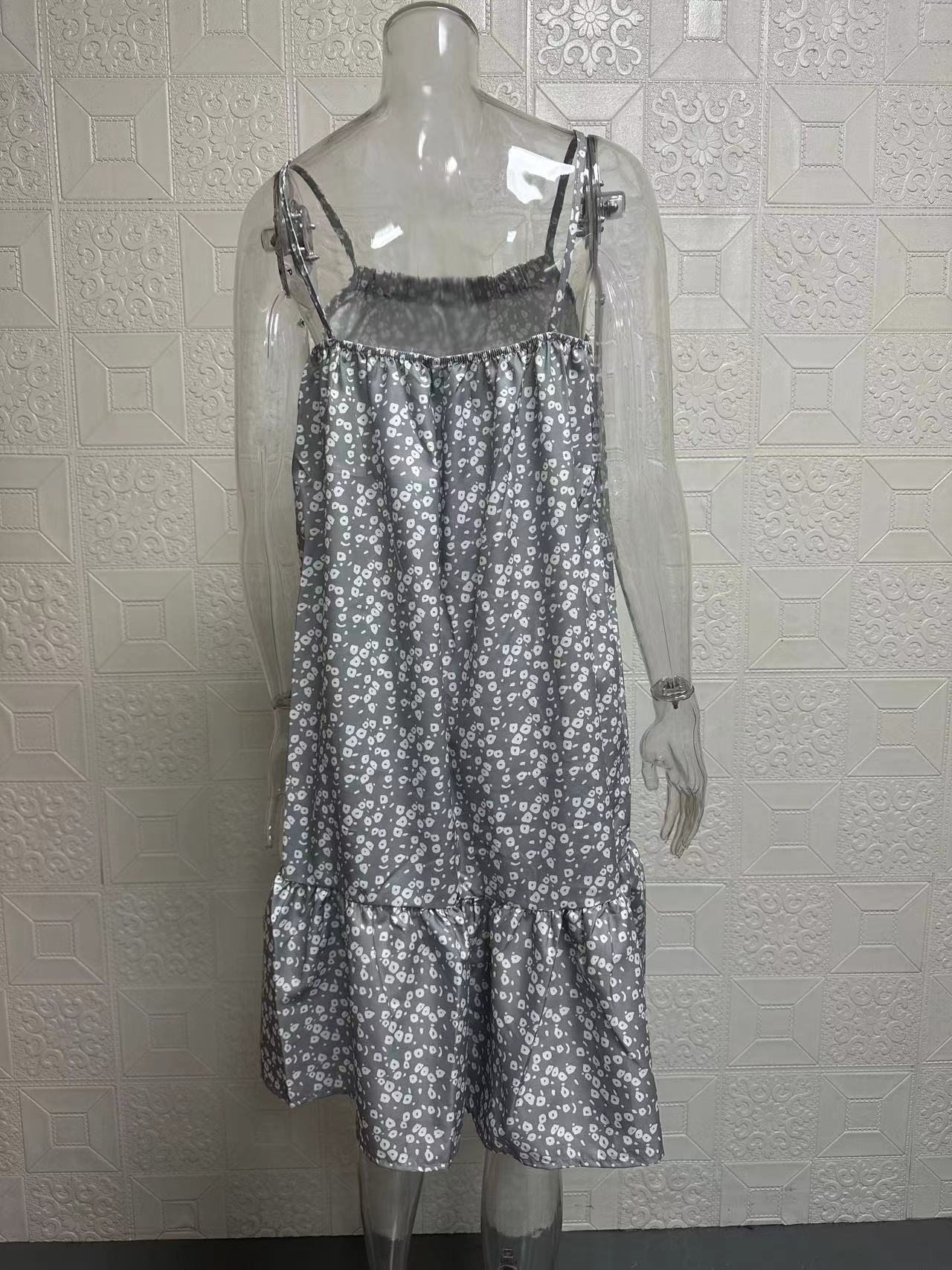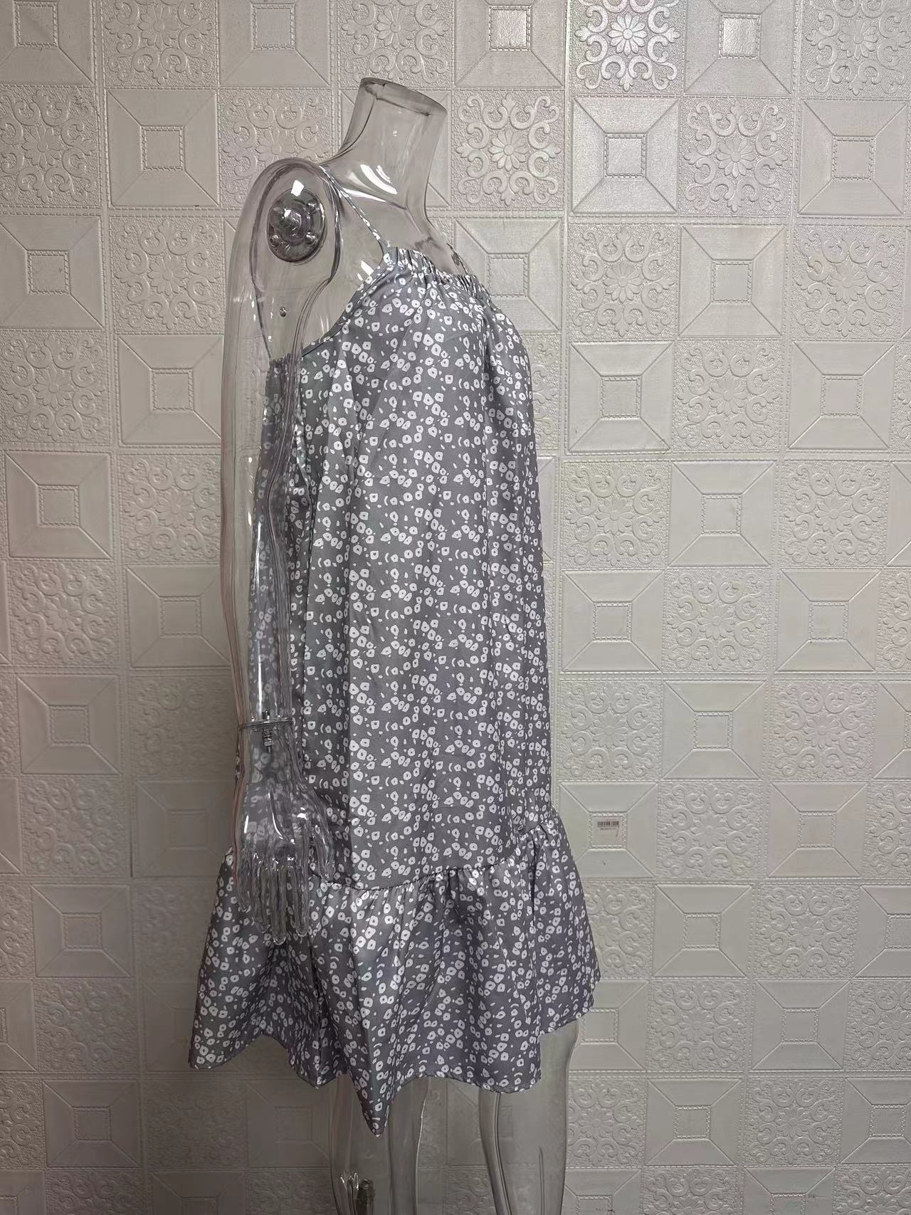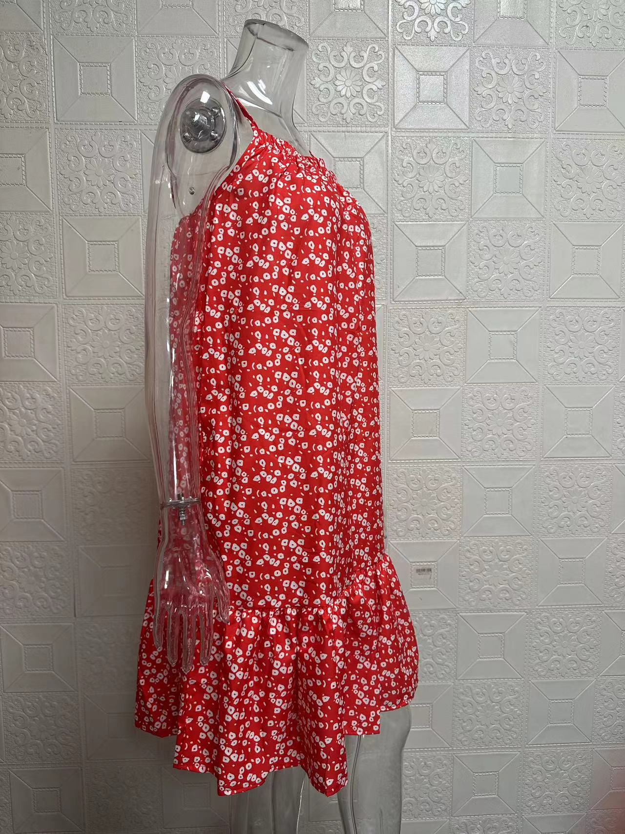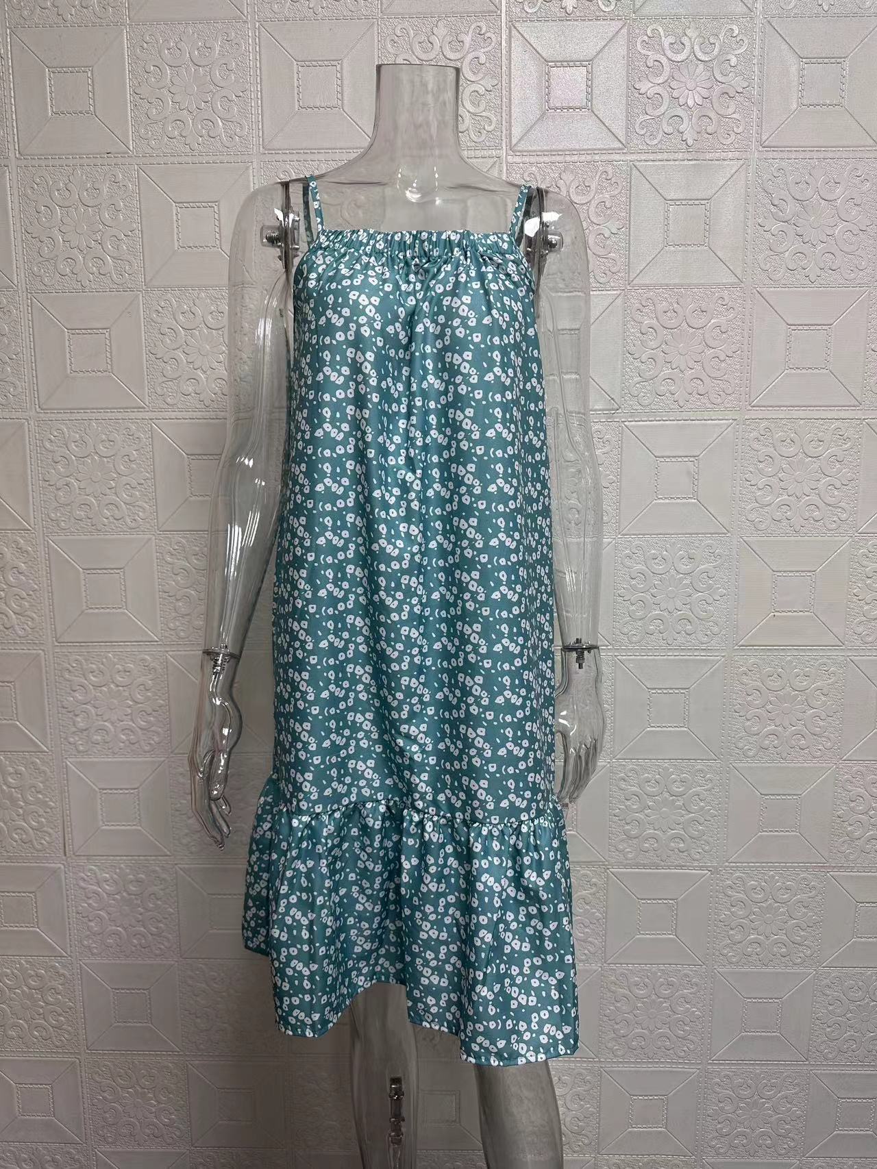 2024夏季新款 亚马逊wish欧美 田园风大摆碎花无袖吊带马甲连衣裙