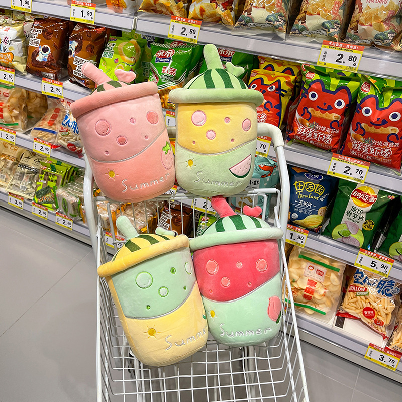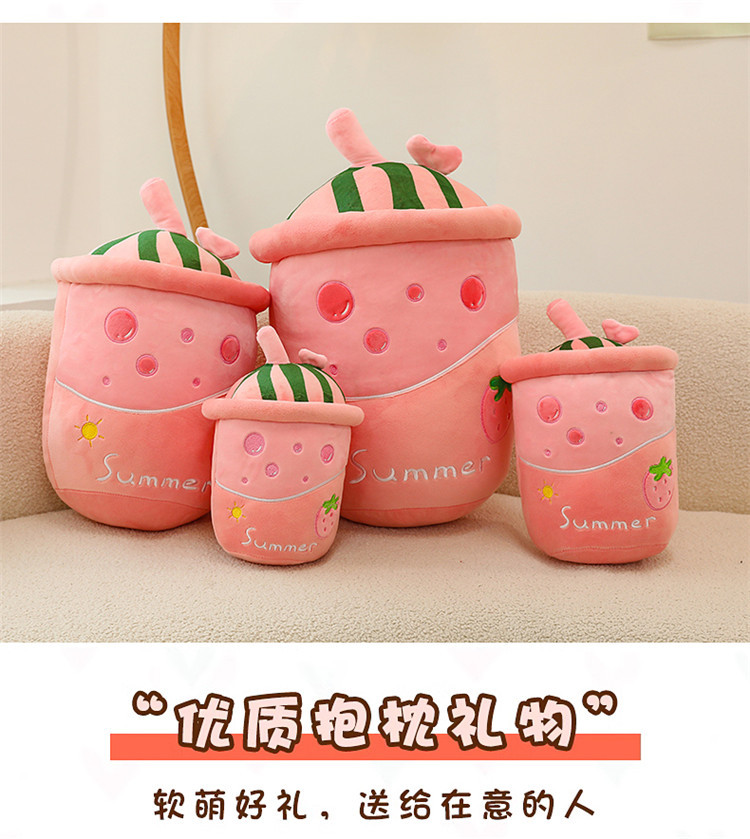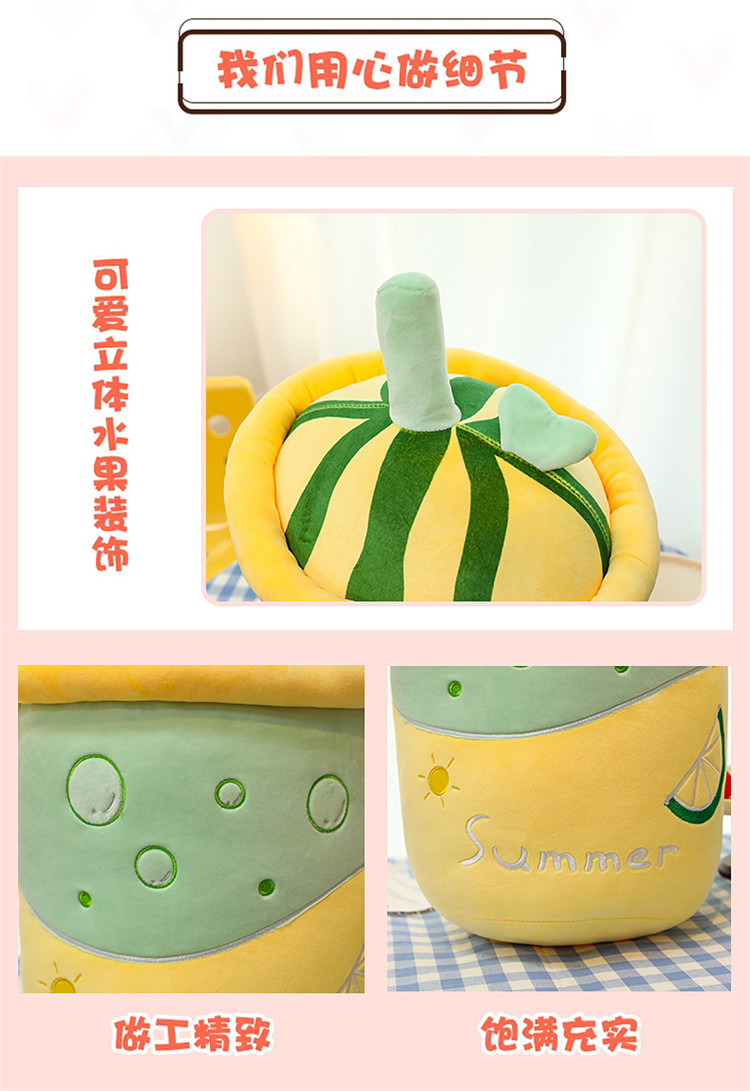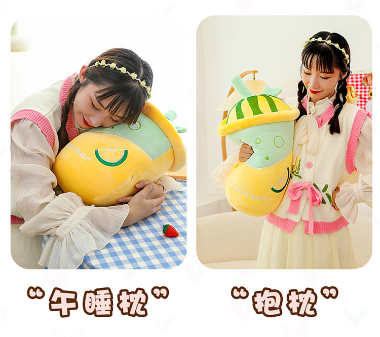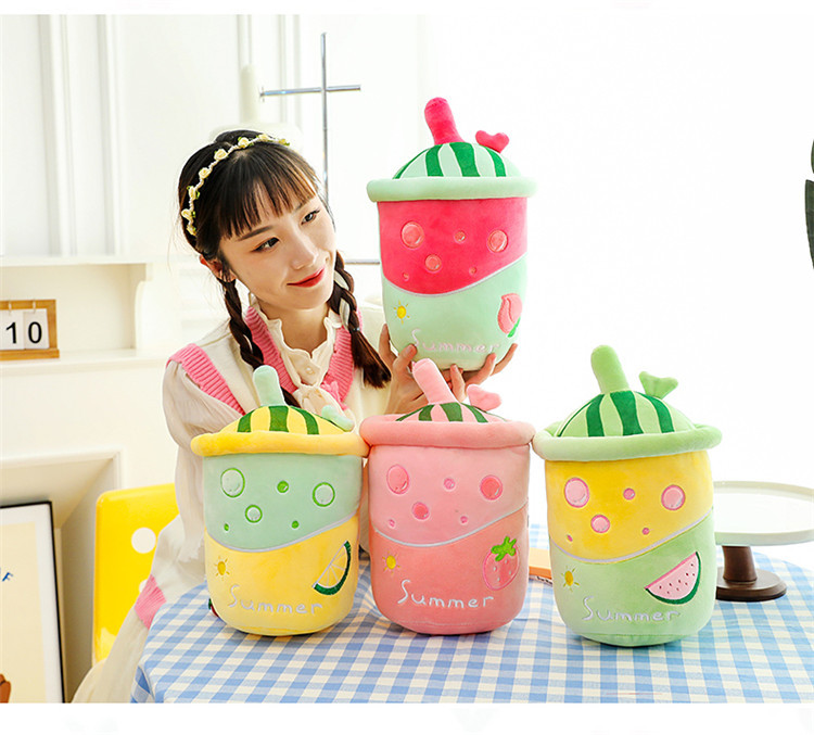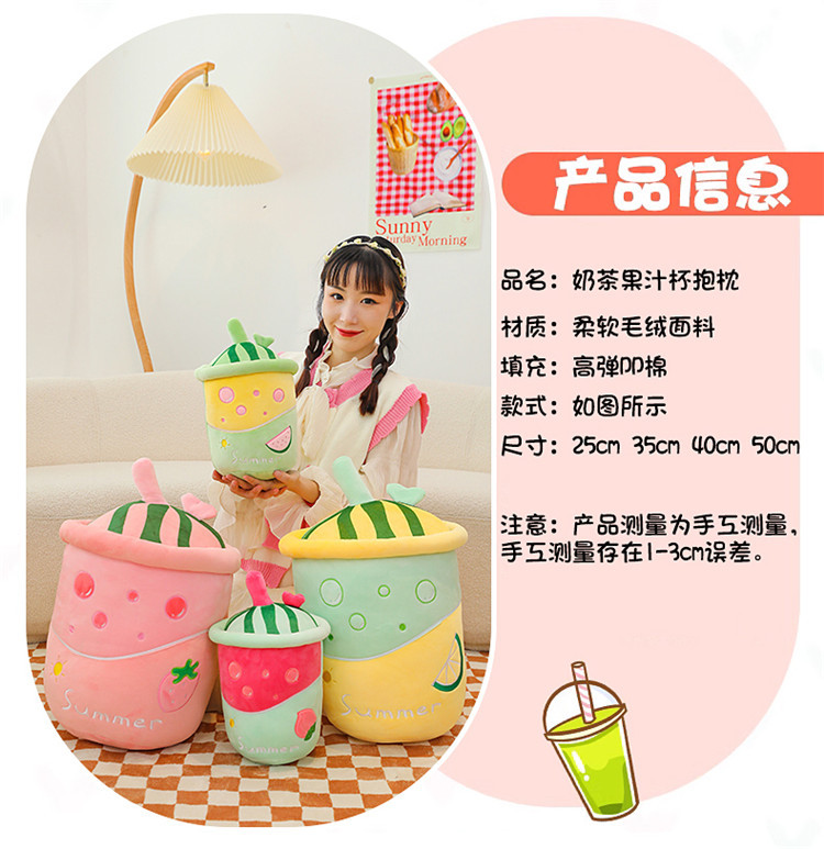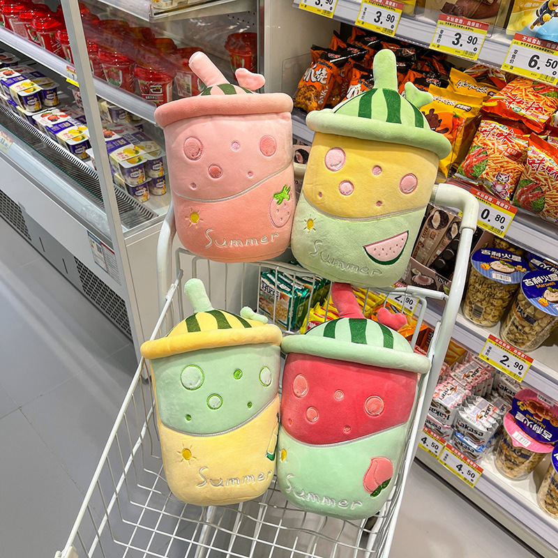 跨境创意新款奶茶果汁抱枕毛绒玩具娃娃靠枕摆件女孩礼物批发玩偶