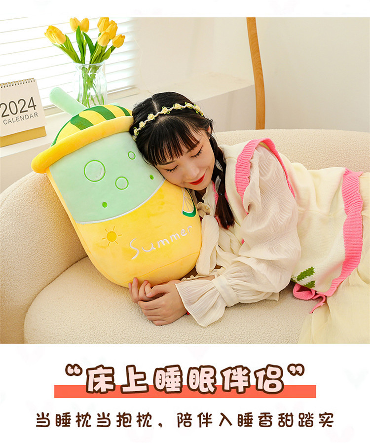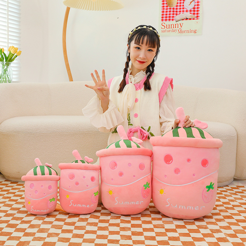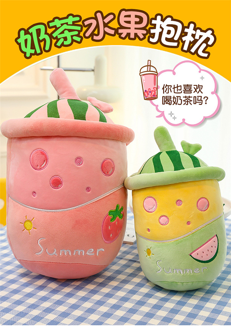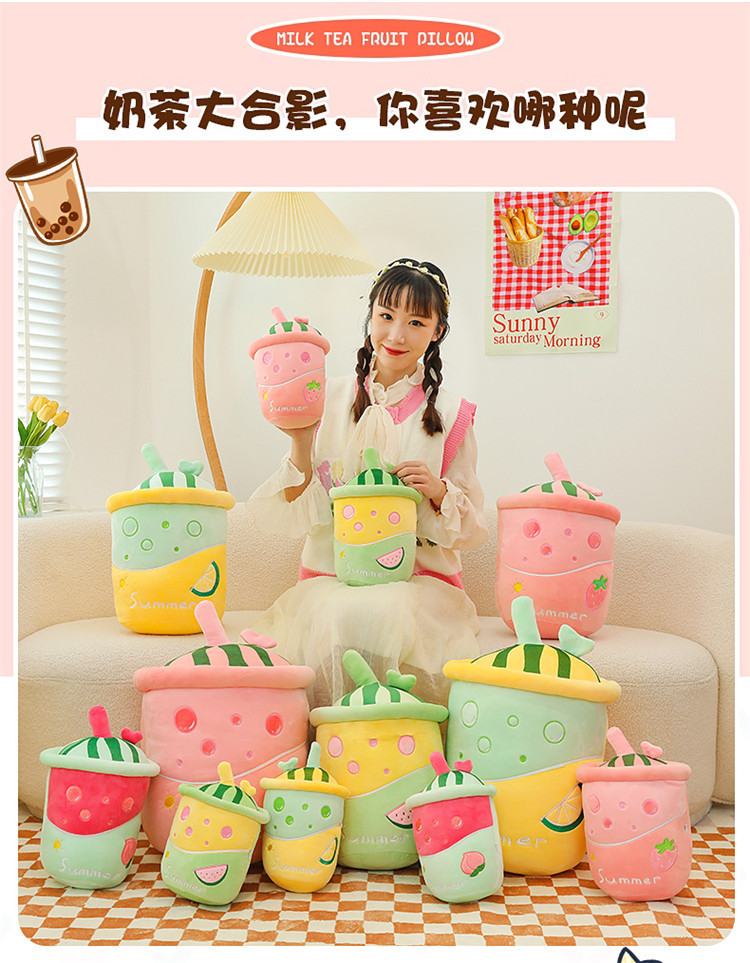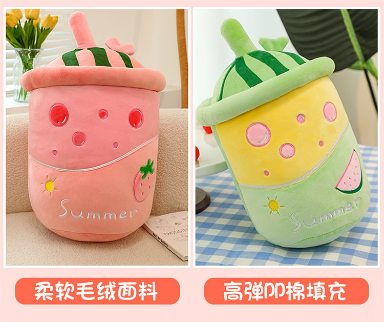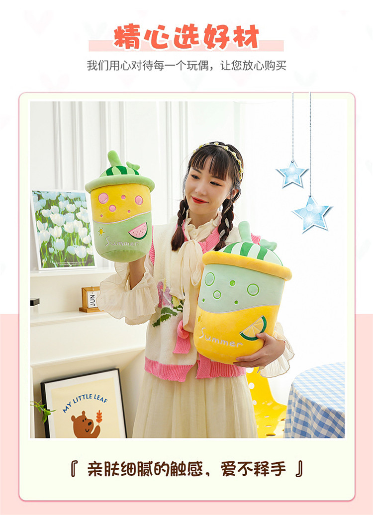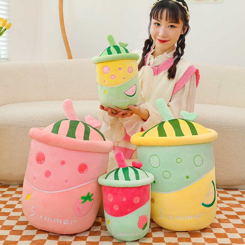 跨境创意新款奶茶果汁抱枕毛绒玩具娃娃靠枕摆件女孩礼物批发玩偶