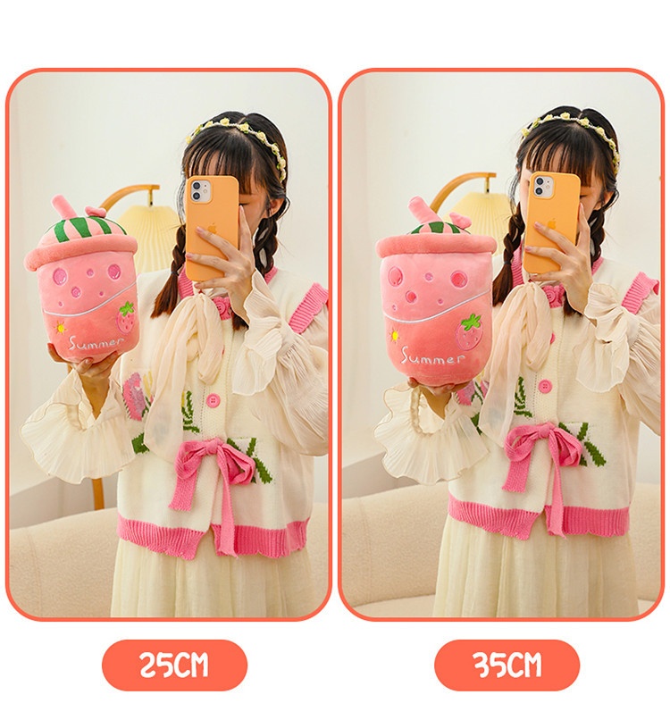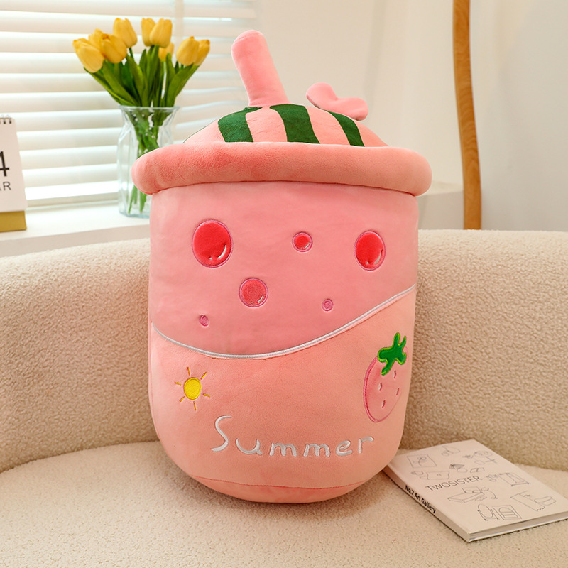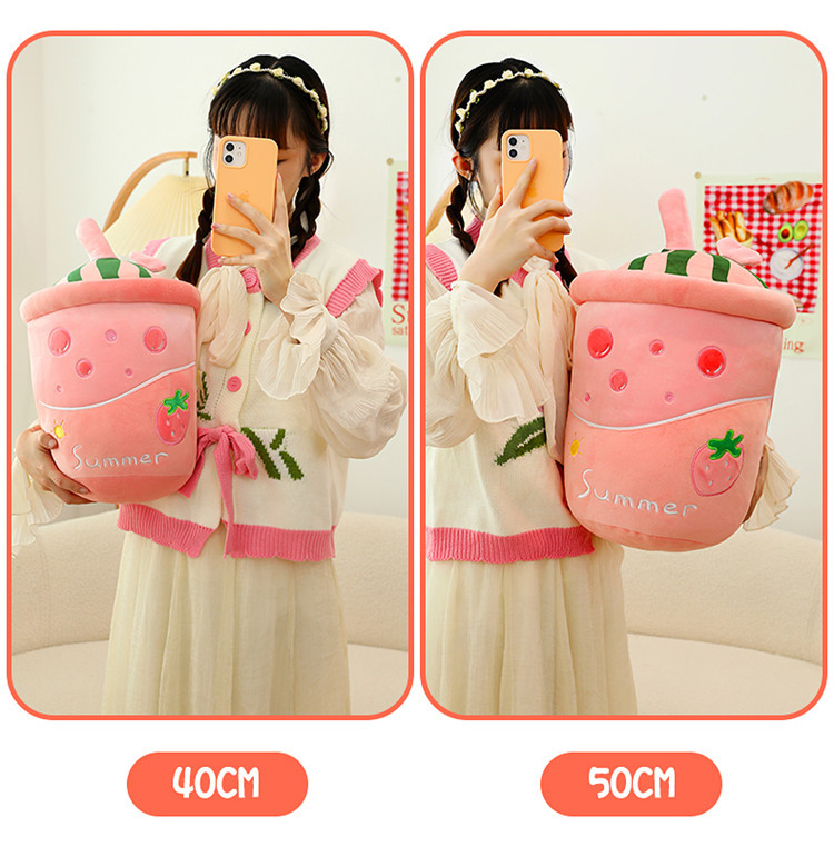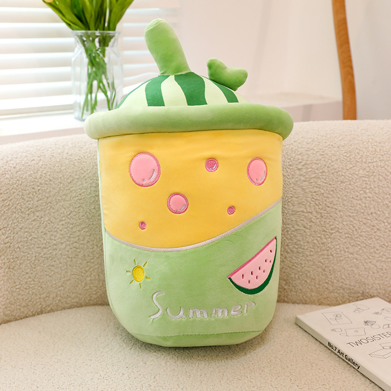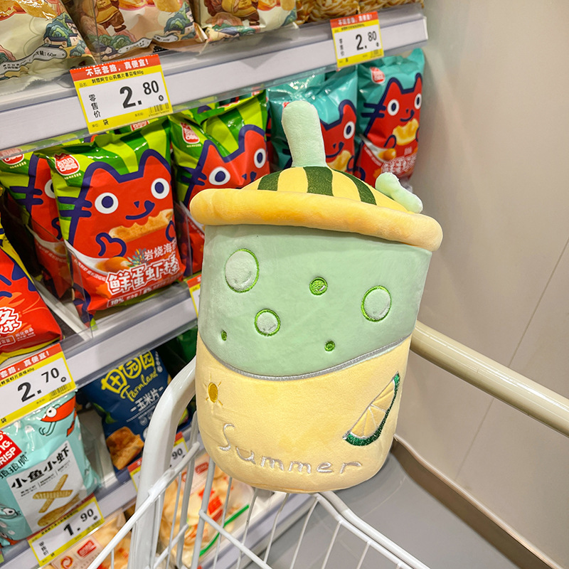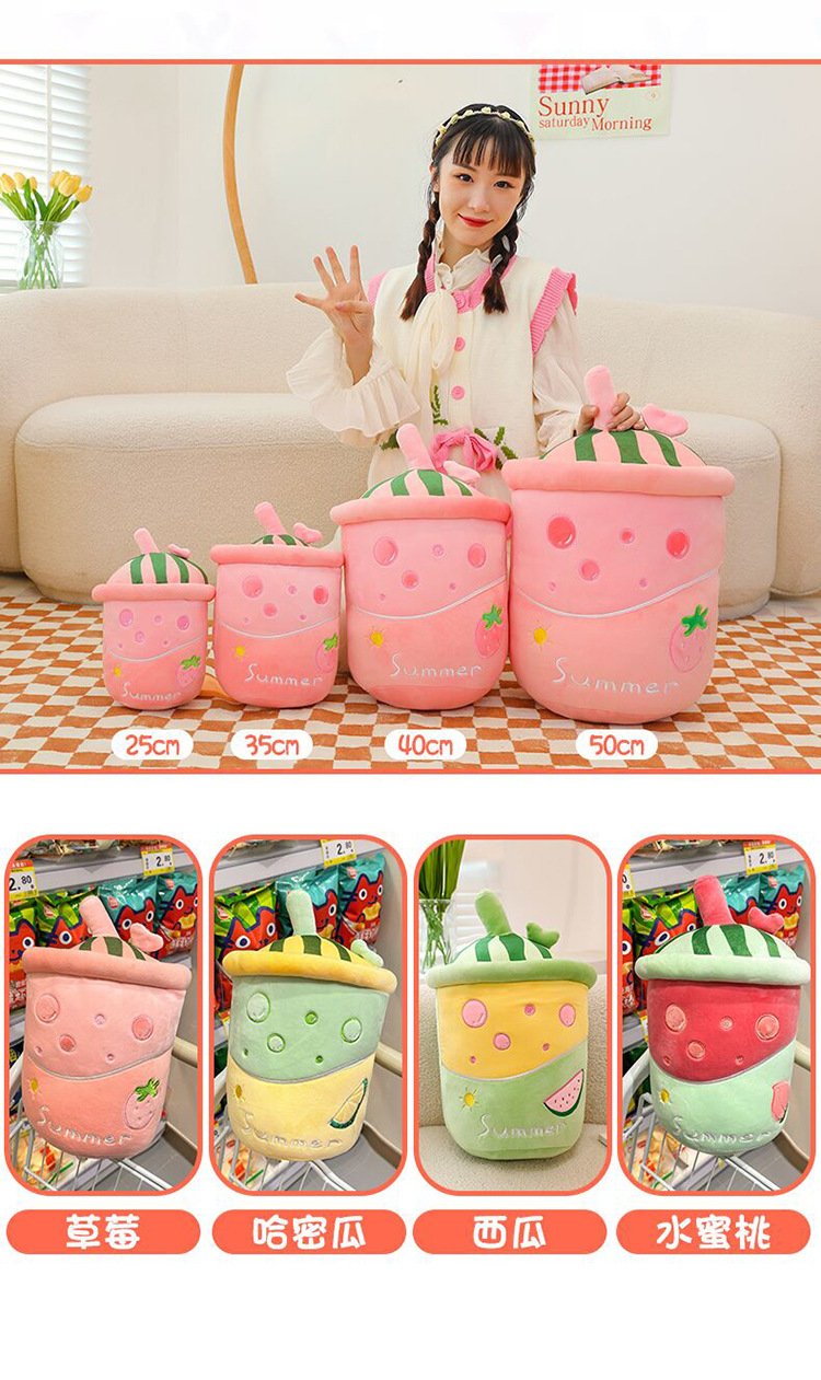跨境创意新款奶茶果汁抱枕毛绒玩具娃娃靠枕摆件女孩礼物批发玩偶