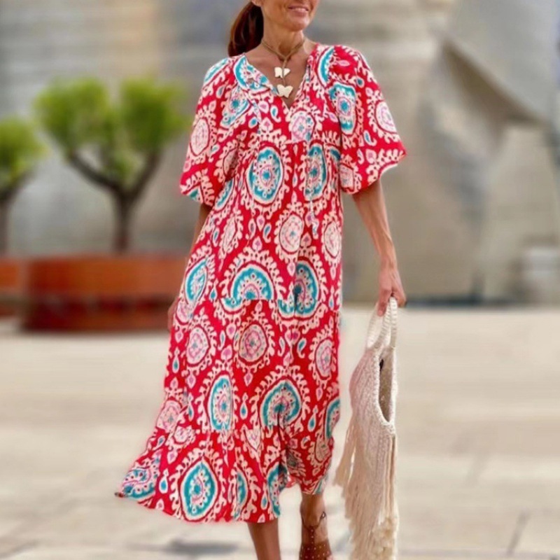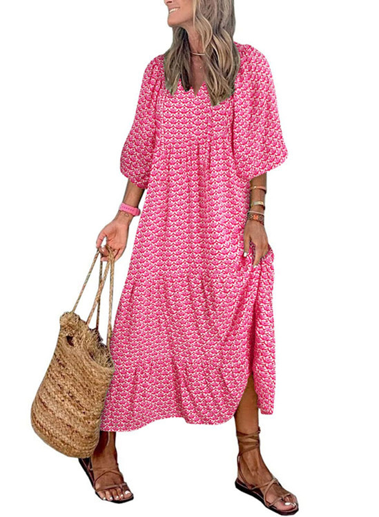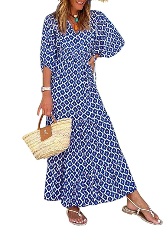 秋季新款独立站热销款几何拼贴泡泡袖连衣裙街头炸街大码女装现货
