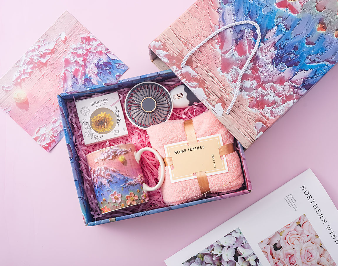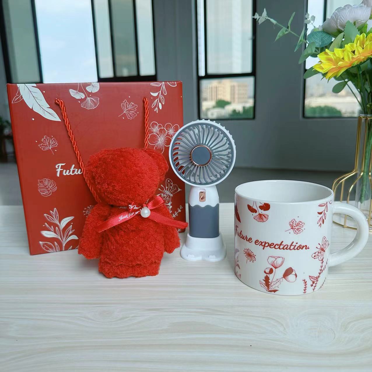 创意杯子毛巾伴手礼套装陶瓷杯带盖带勺开业活动礼品马克杯高颜值