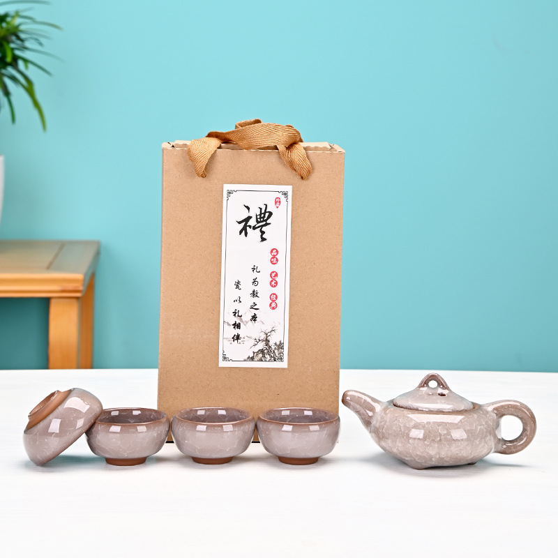 七彩冰裂釉一壶四杯陶瓷茶具套装茶壶茶杯活动开业福利礼品伴手礼