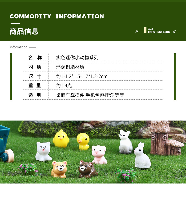 实色迷你小动物系列DIY装饰品树脂配件微景观汽车载迷你小摆件
