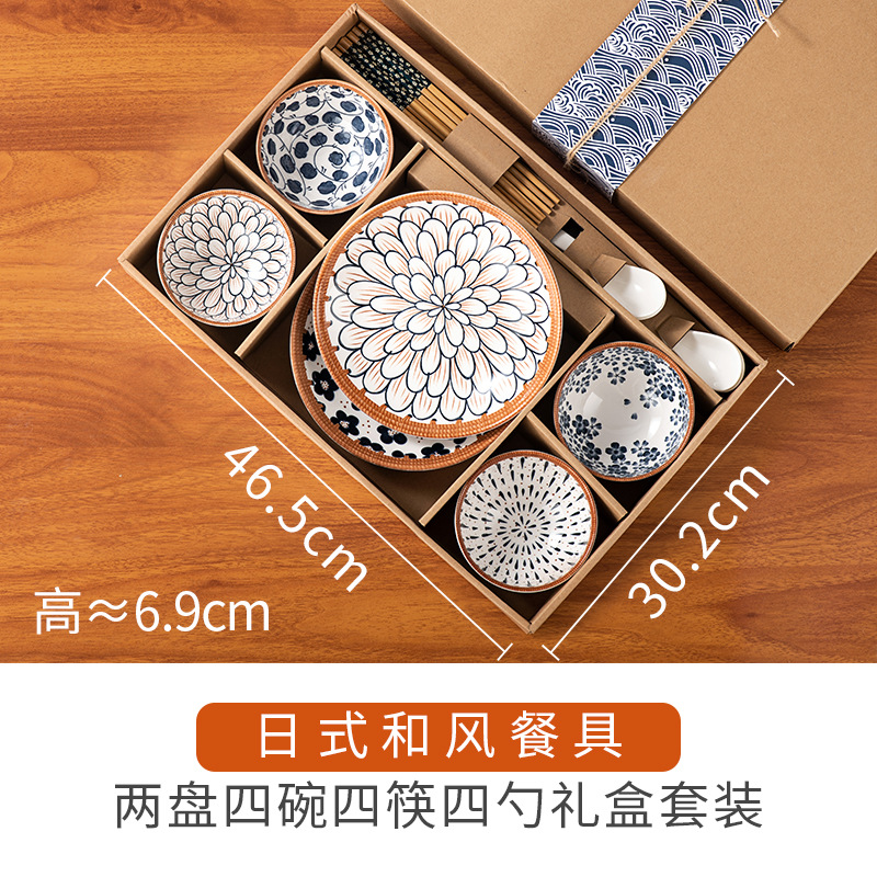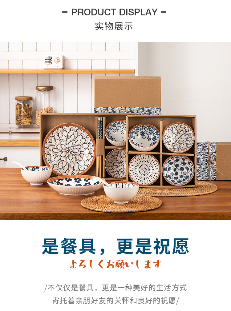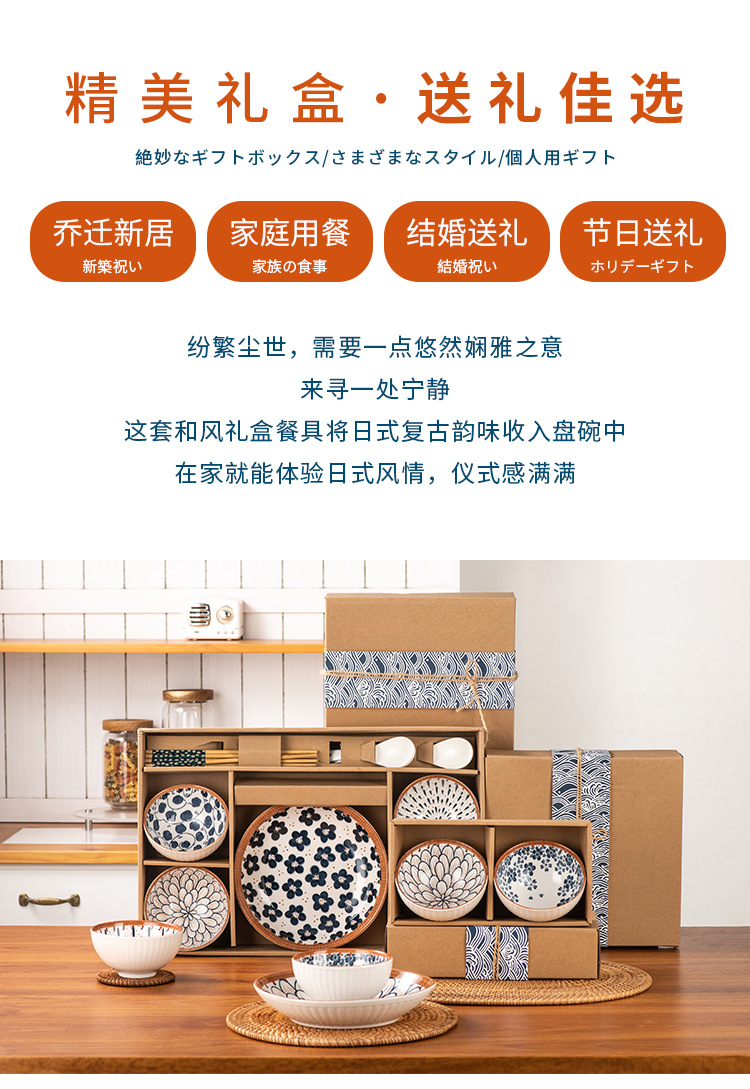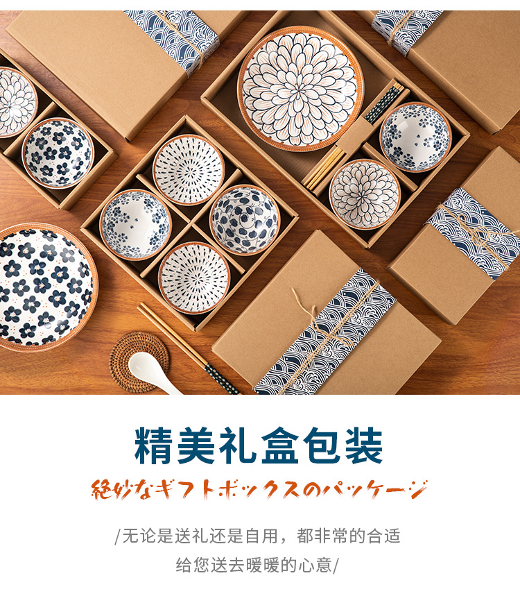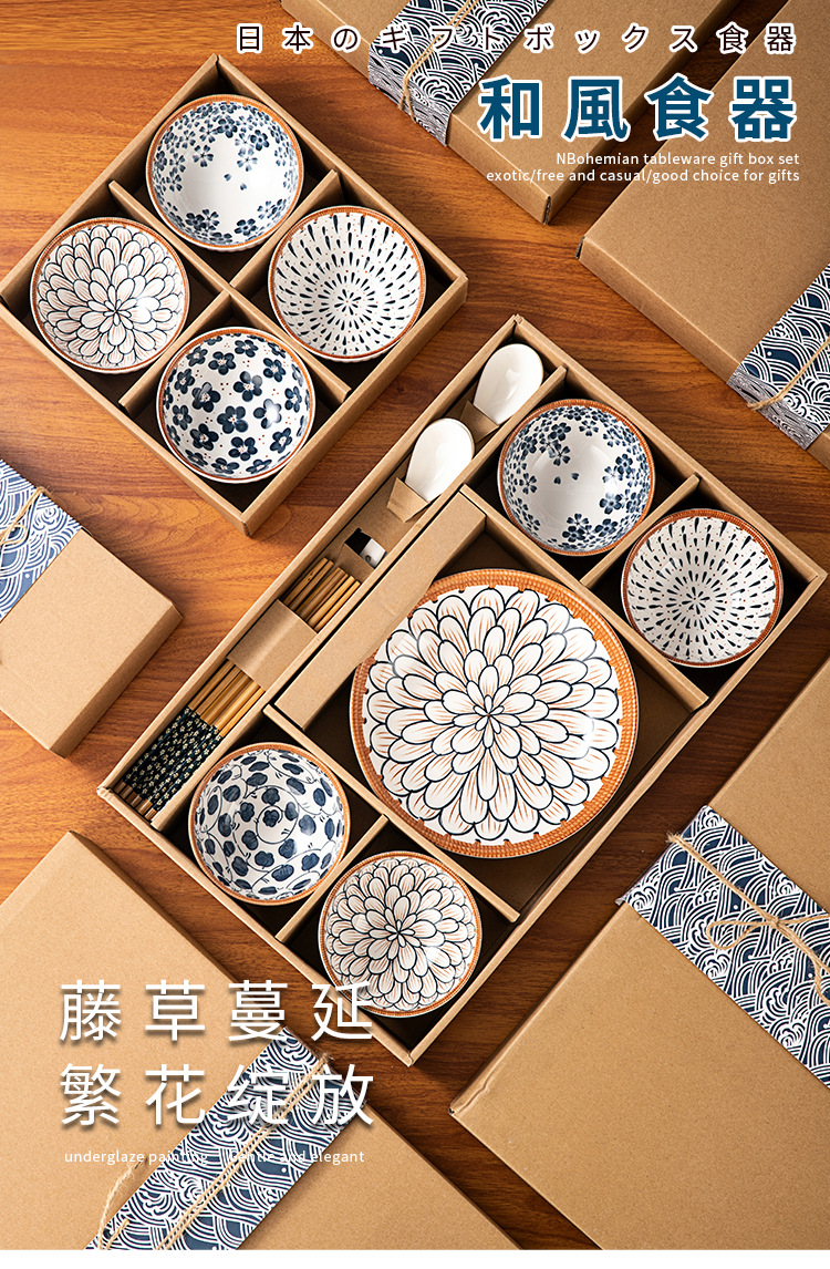 日式陶瓷碗盘礼盒装釉下彩陶瓷餐具套碗开业活动礼品套装可加LOGO