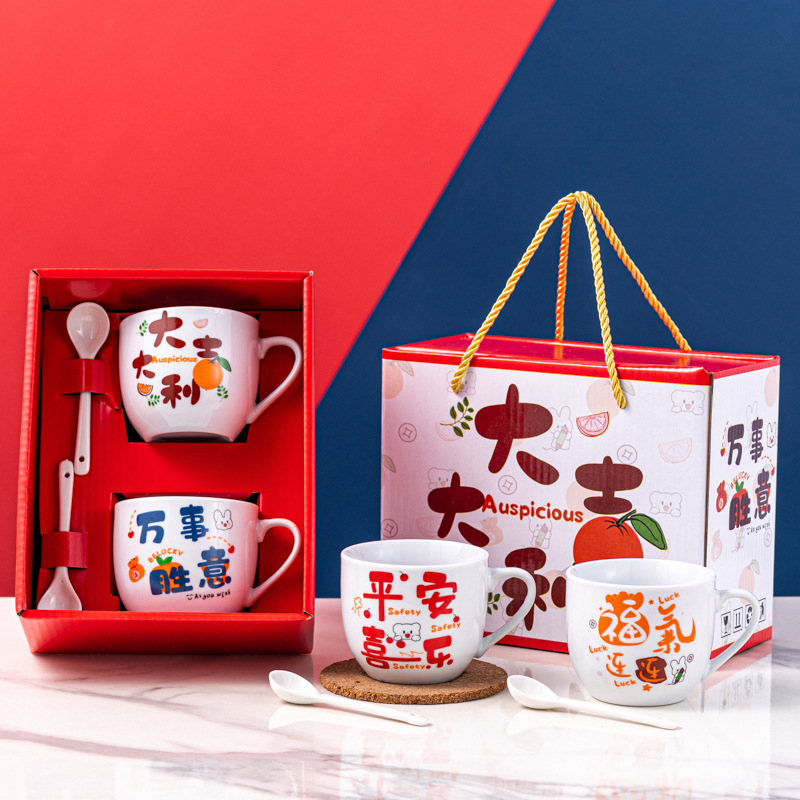 创意陶瓷杯卡通双杯开业伴手礼活动赠送礼盒装杯子马克杯印制LOGO