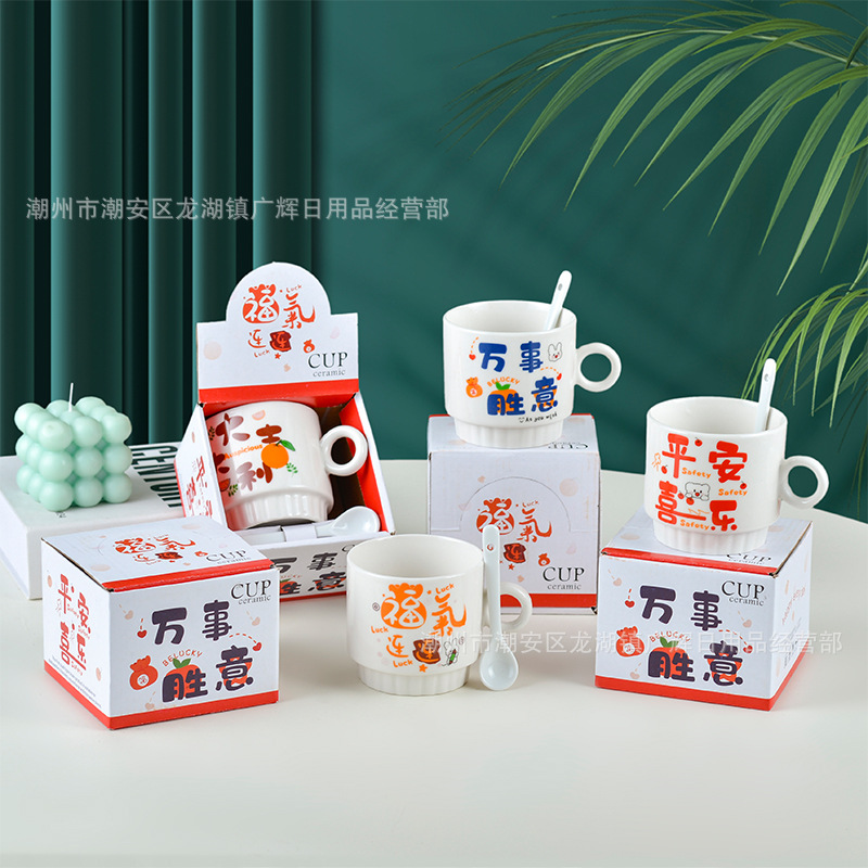 | ceramic cup + plastic spoon + box(陶瓷杯+塑料勺+盒) | USD $0.38 | 999999 set available |