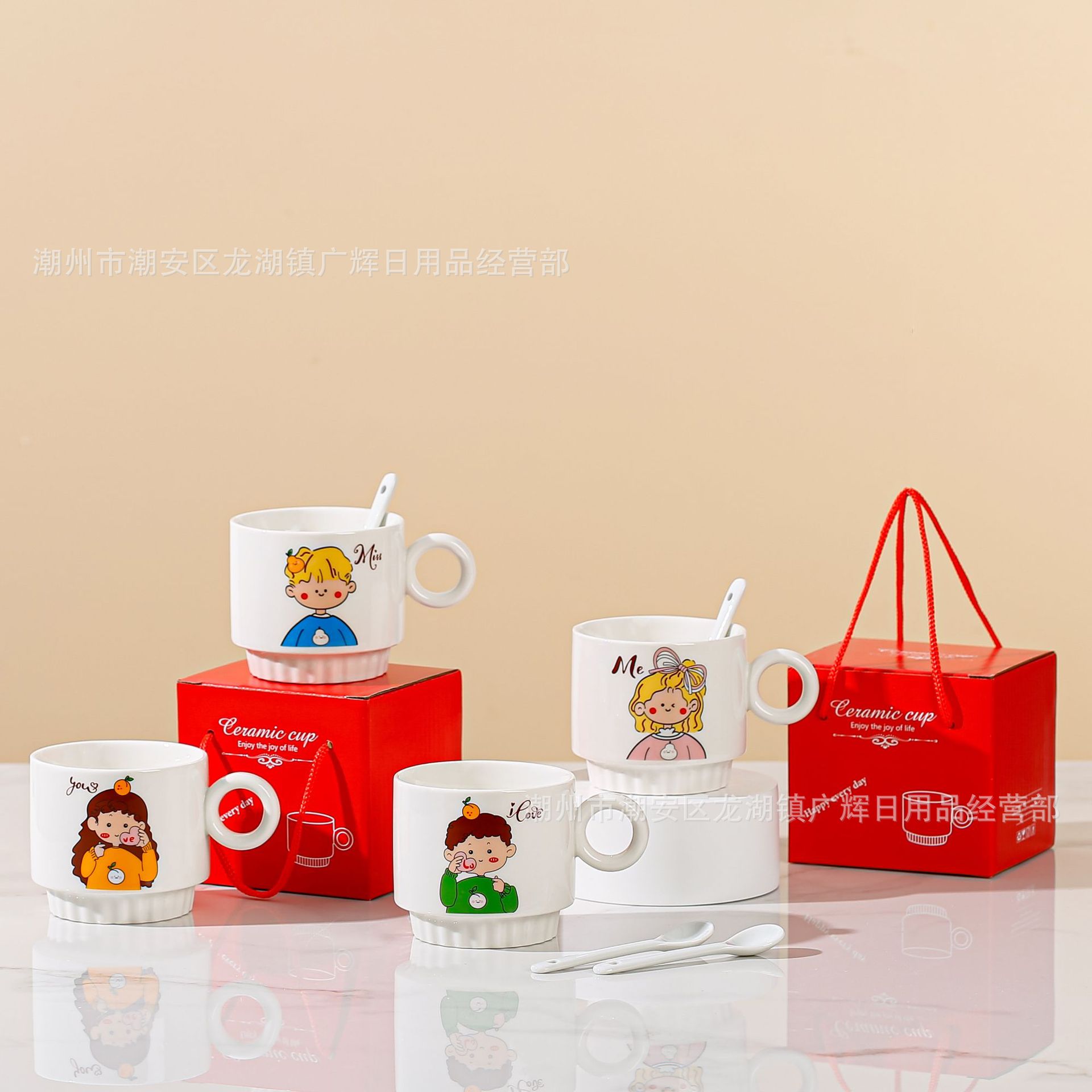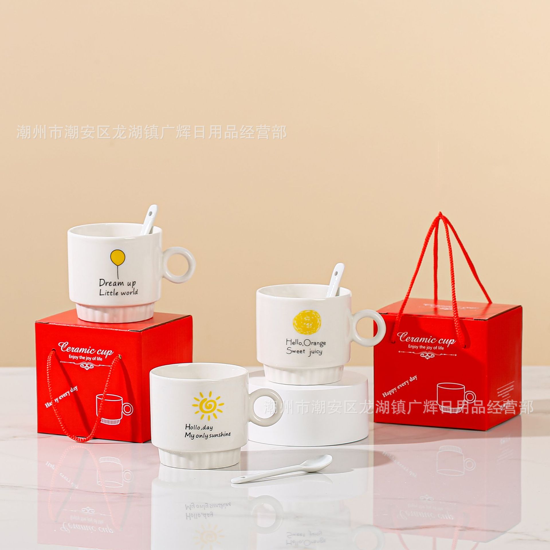 | ceramic cup + plastic spoon + box(陶瓷杯+塑料勺+盒) | USD $0.57 | 0 set available |
