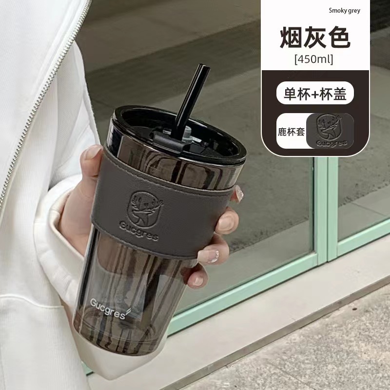 北极光吸管杯网红ins风玻璃水杯带盖提绳高颜值双饮杯活动礼品杯