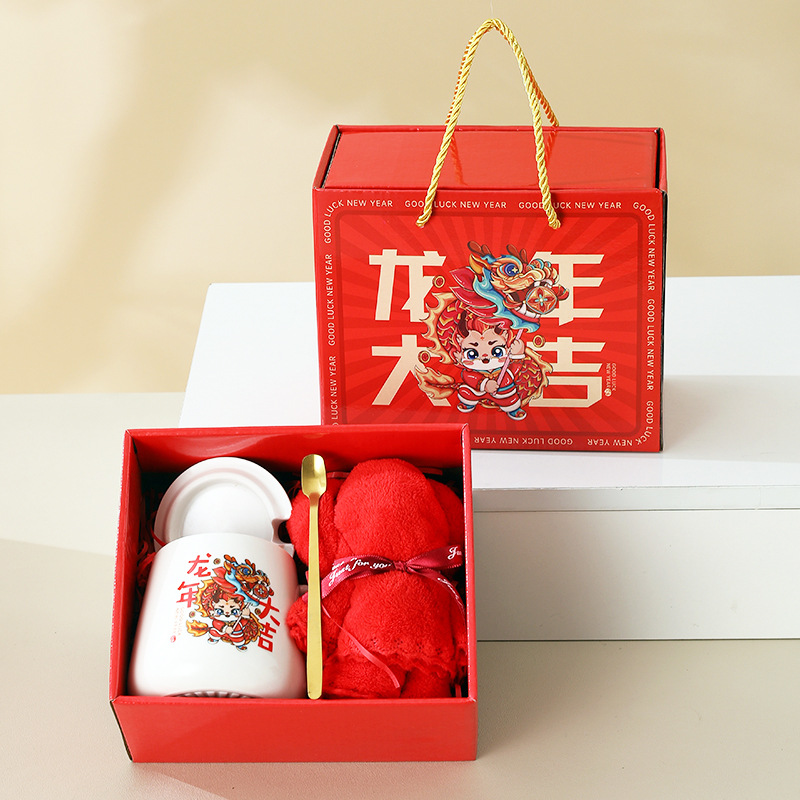 龙年陶瓷马克杯礼盒装水杯毛巾实用开业活动礼品礼物伴手礼送客户