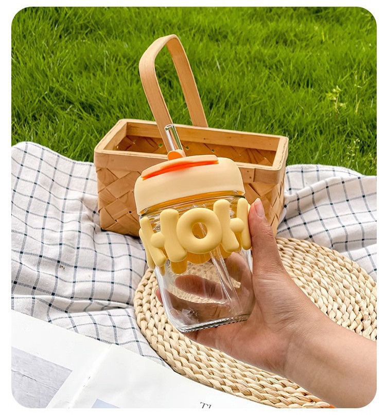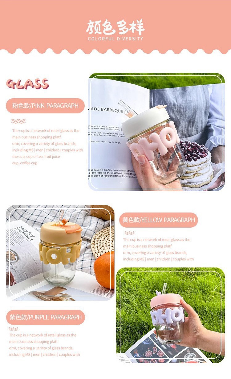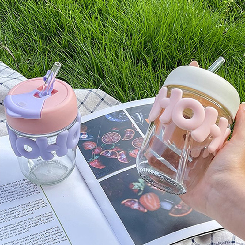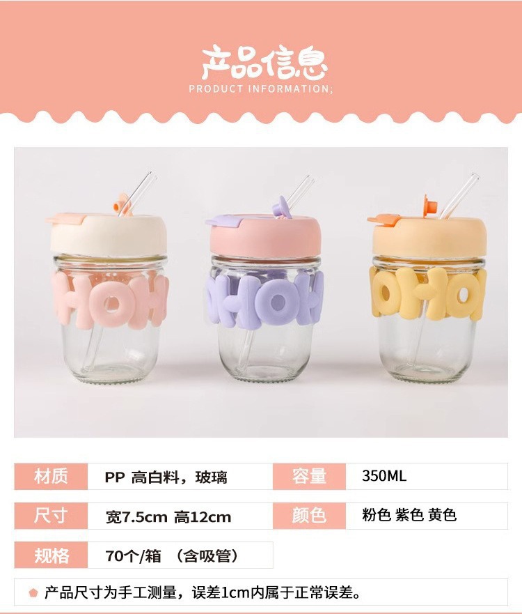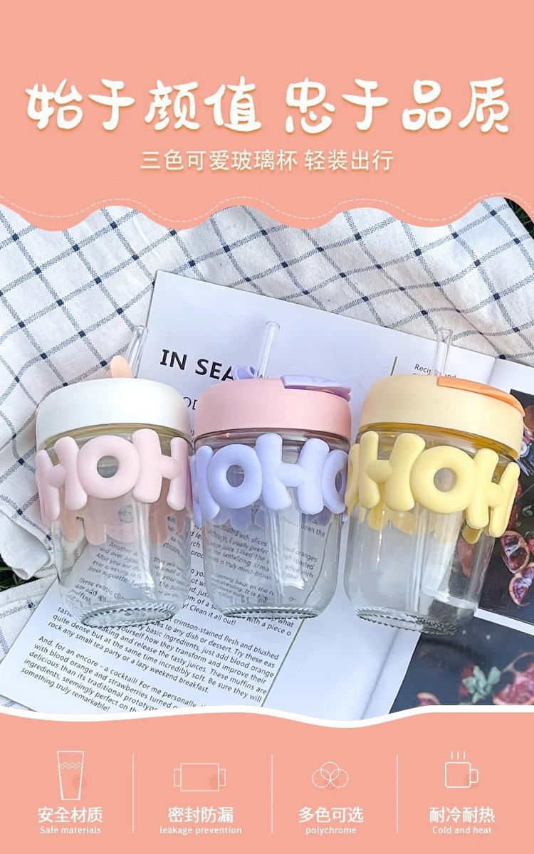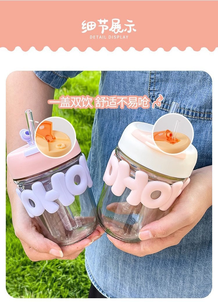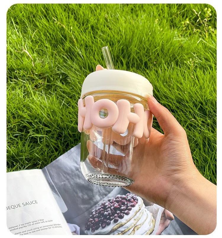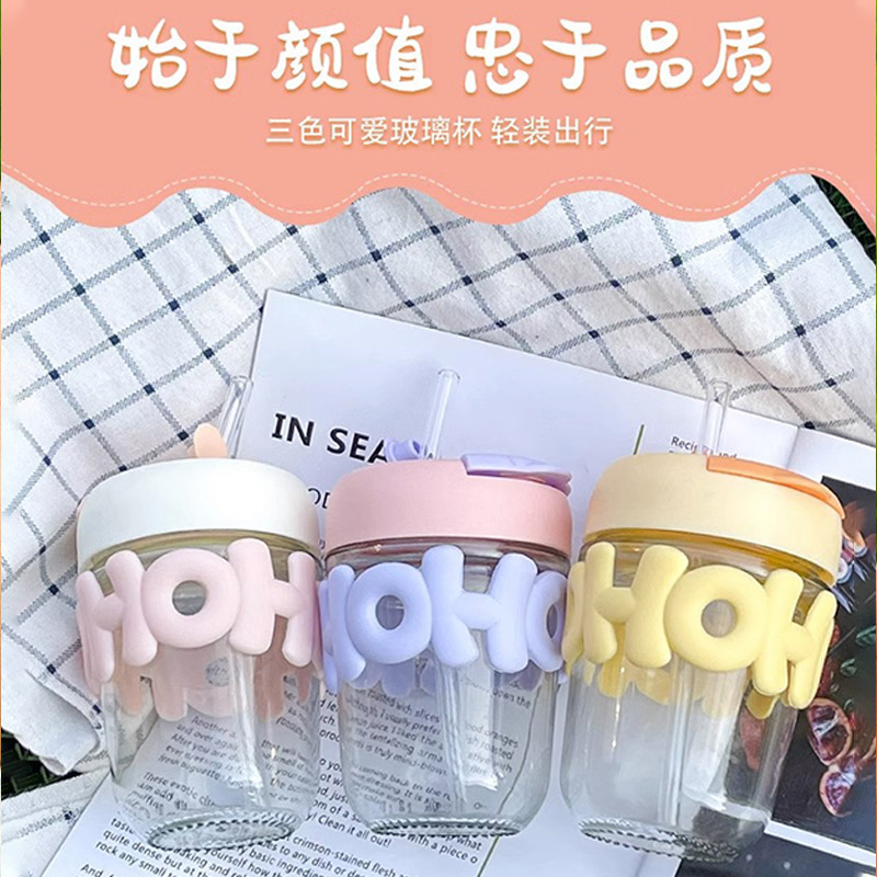 高颜值珍珠手链玻璃杯带盖字母双饮咖啡办公室喝水杯子手提创意