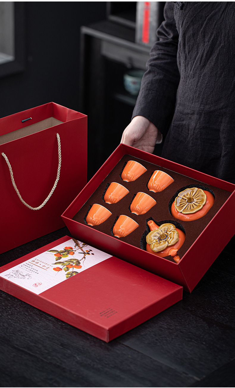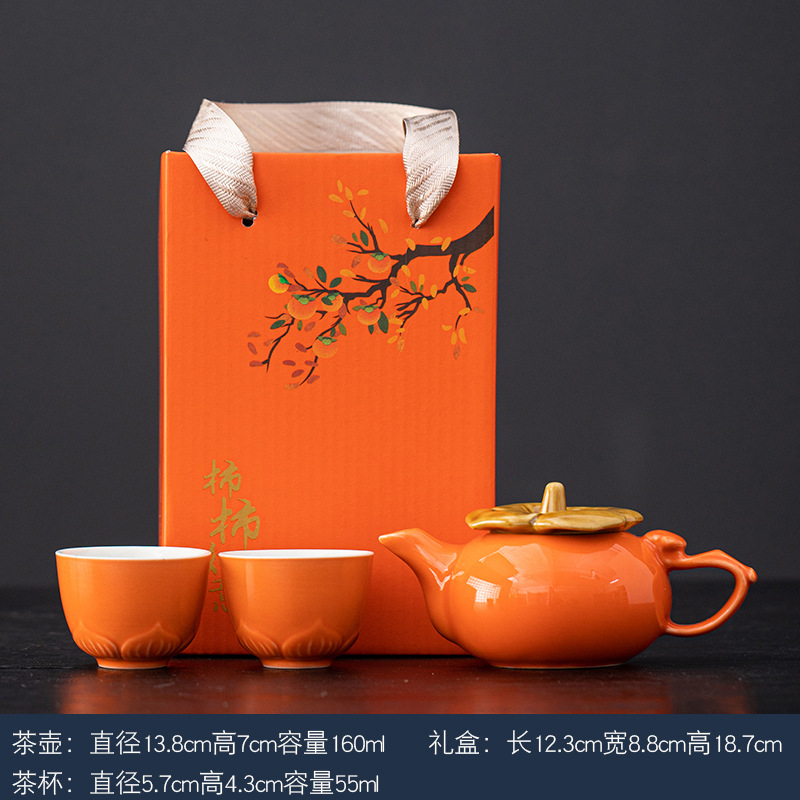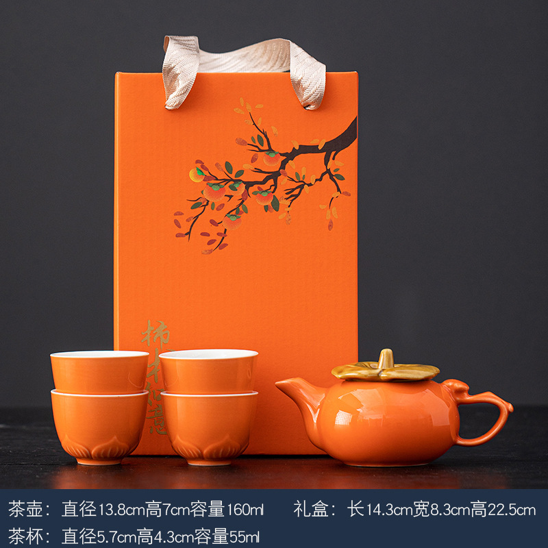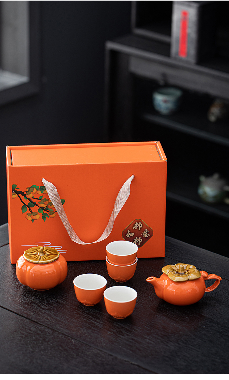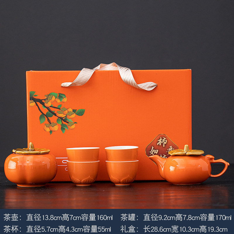 事事如意茶具套装创意柿子茶壶茶杯陶瓷茶具伴手礼开业活动小礼品