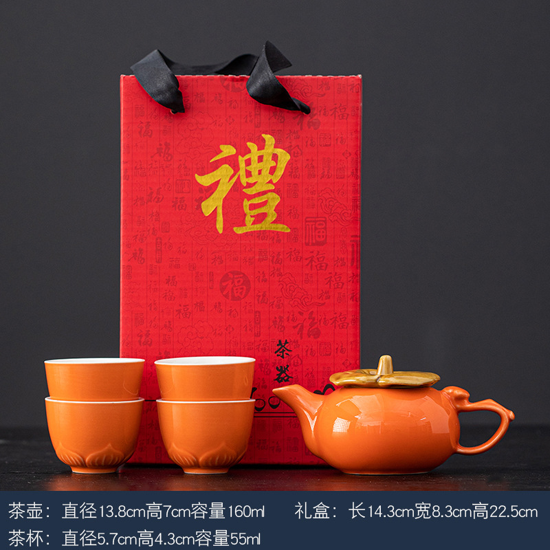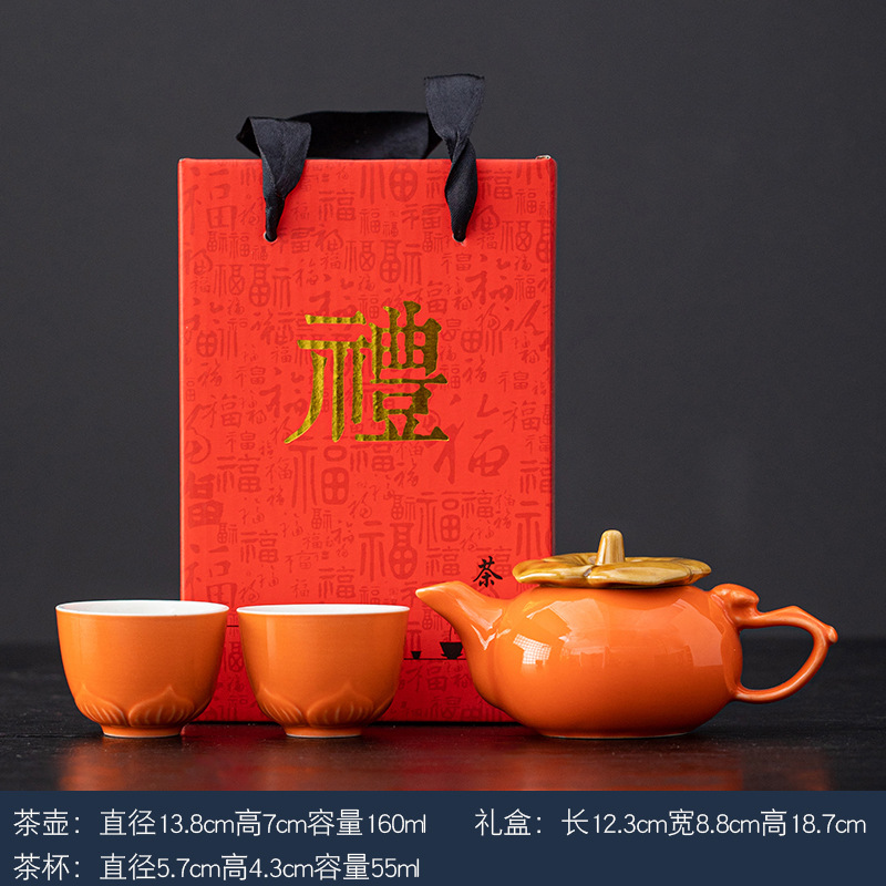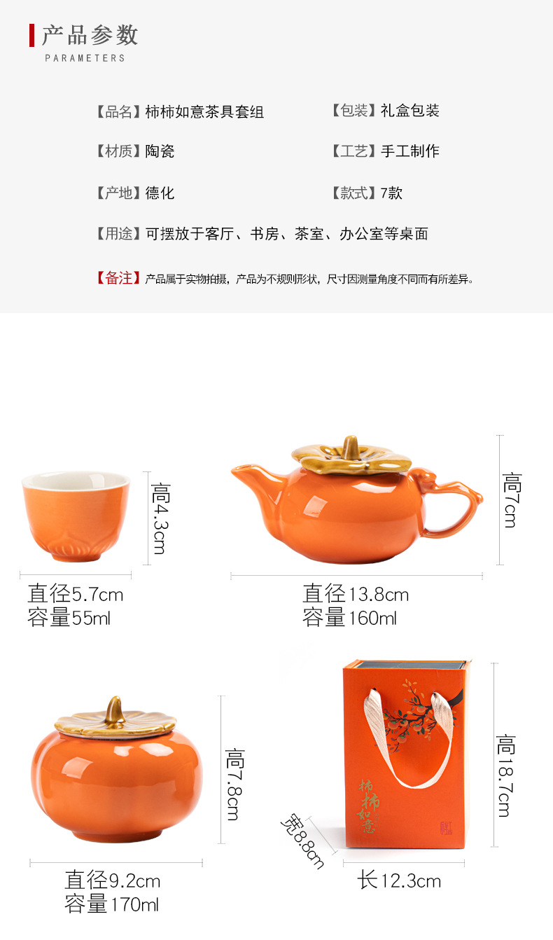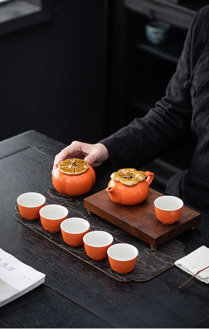 事事如意茶具套装创意柿子茶壶茶杯陶瓷茶具伴手礼开业活动小礼品