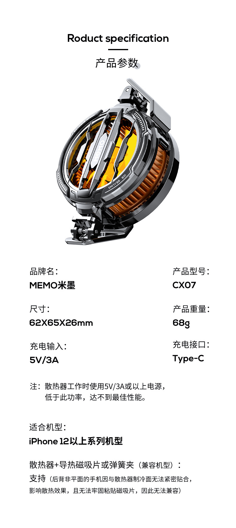 米墨最新CX07半导体制冷手机散热器磁吸背夹通用结冰款散热神器