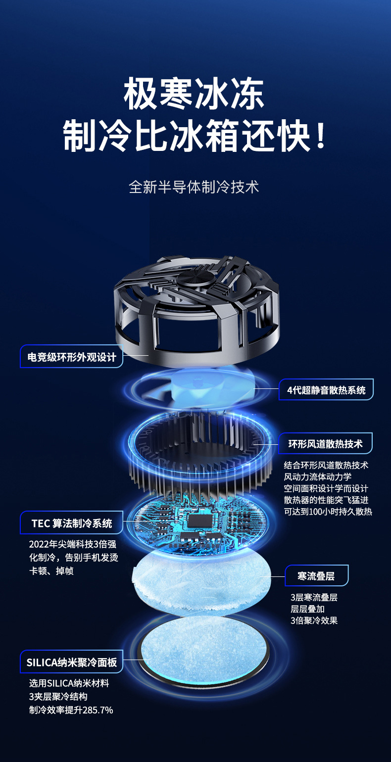 新款AL02手机散热器半导体制冷磁吸款5V3A Max二档档调节功能足13