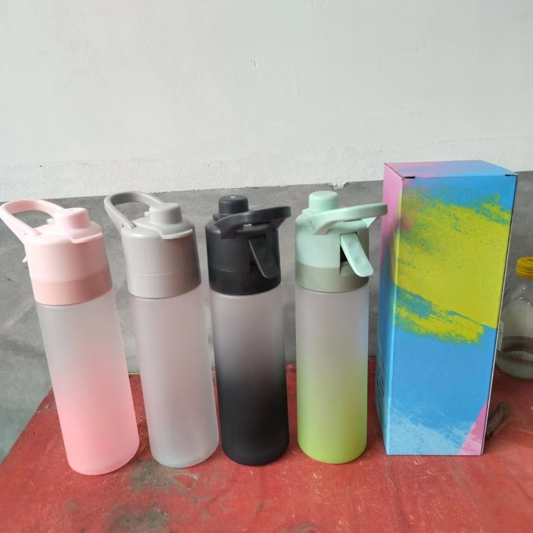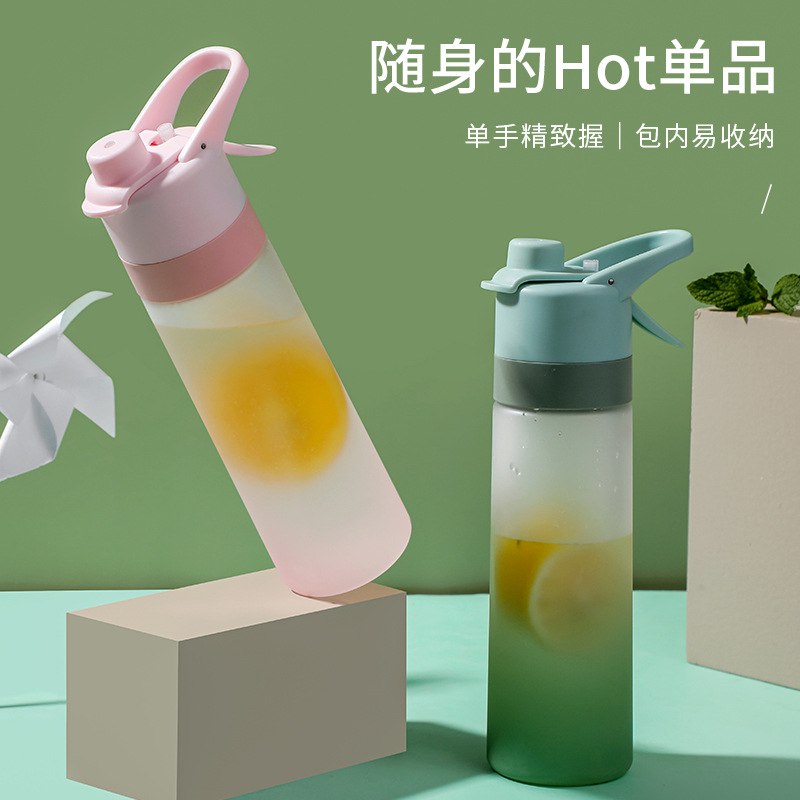 喷水雾杯大容量户外运动随手杯学生渐变磨砂吸管塑料水杯一件代发