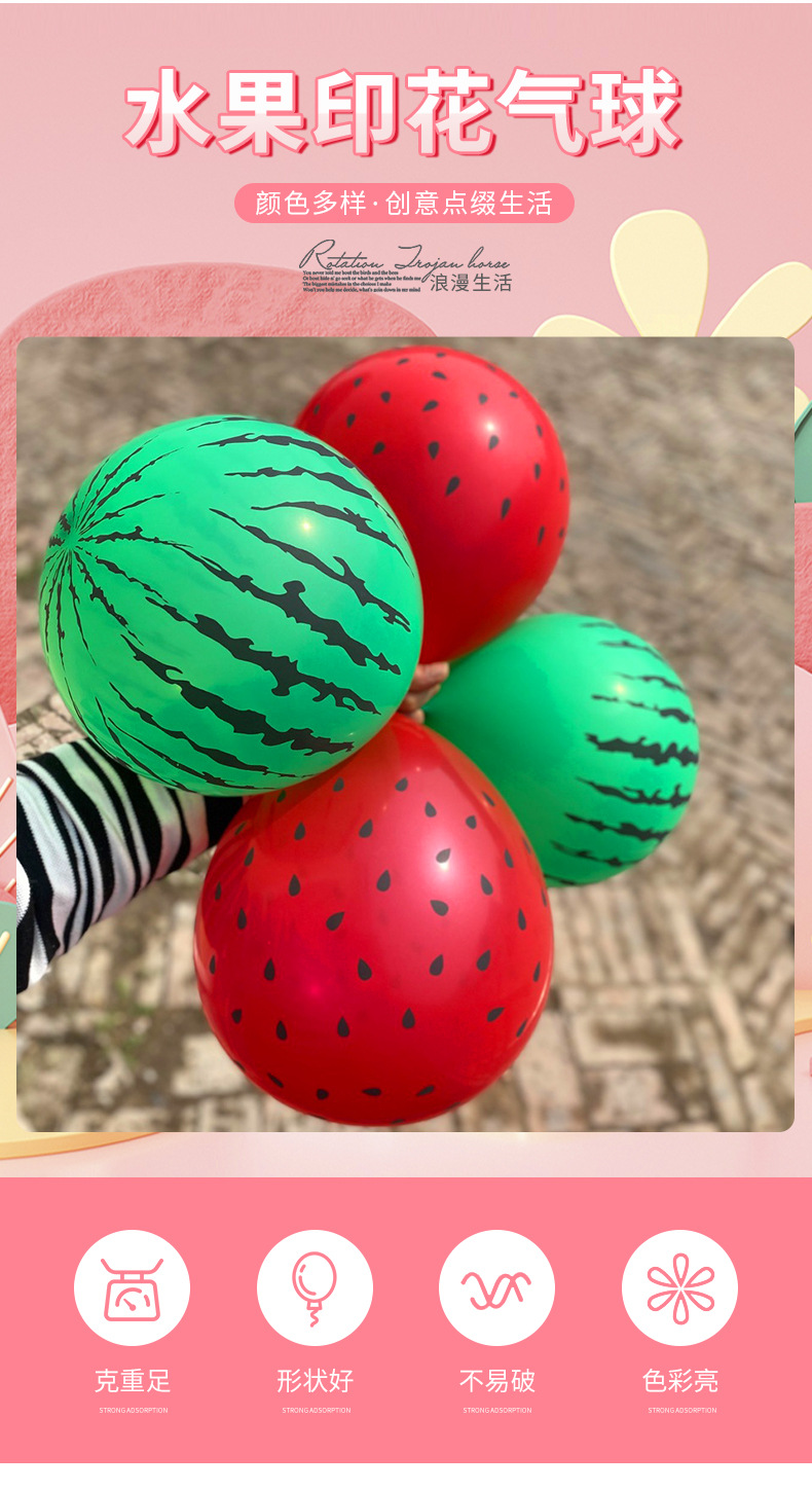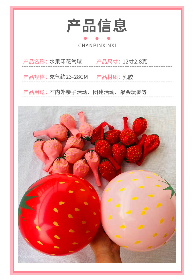 草莓波点玩具气球西瓜卡通水果气球场地装饰夜市摆摊儿童玩具气球