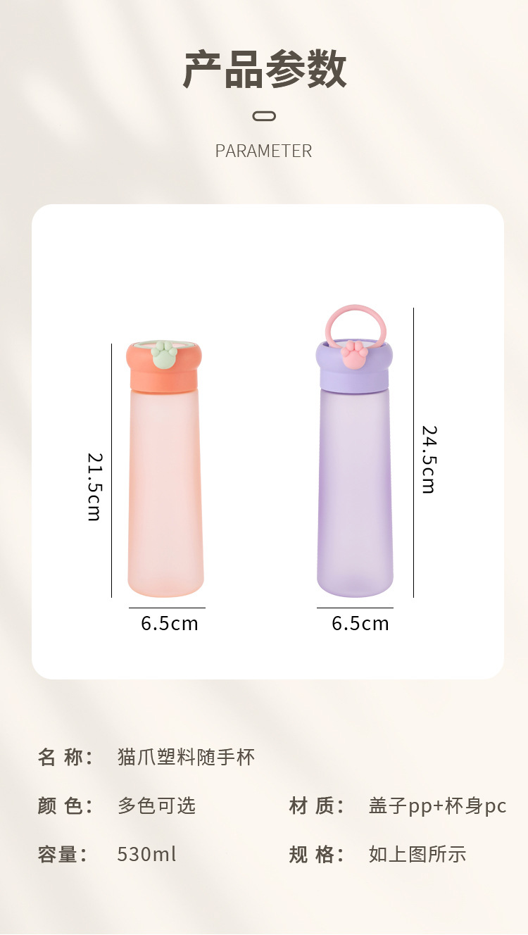 猫爪便携手提塑料杯创意礼品户外广告水杯男女学生大容量随手杯子