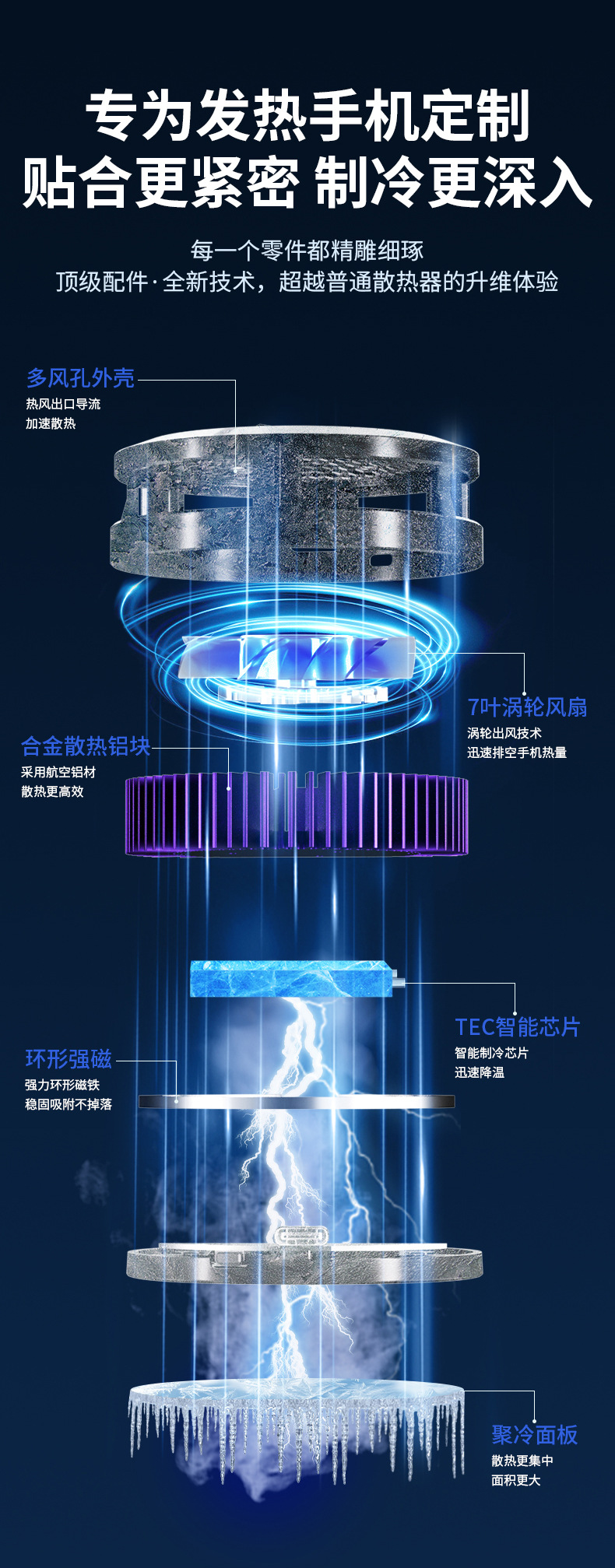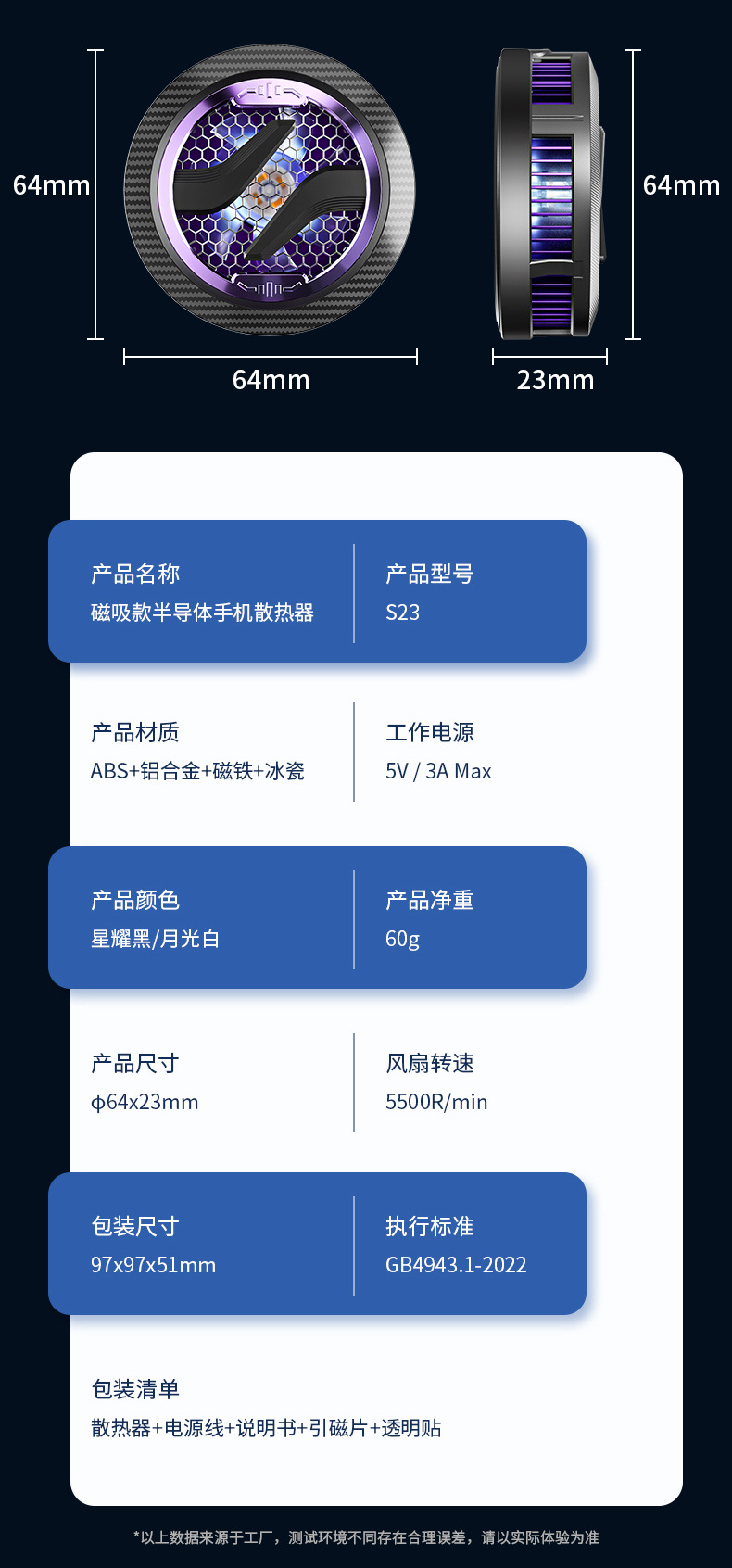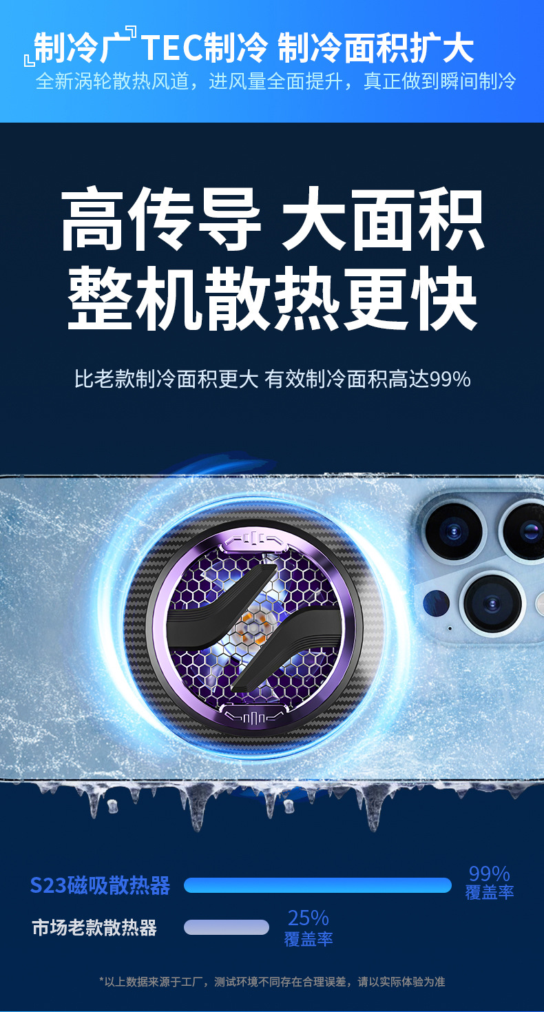 新款S23手机散热器半导体制冷 磁吸款 5V3AMax 三档调节功能结冰