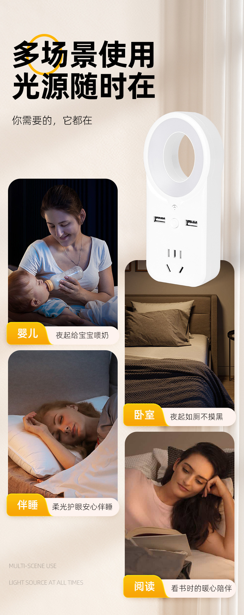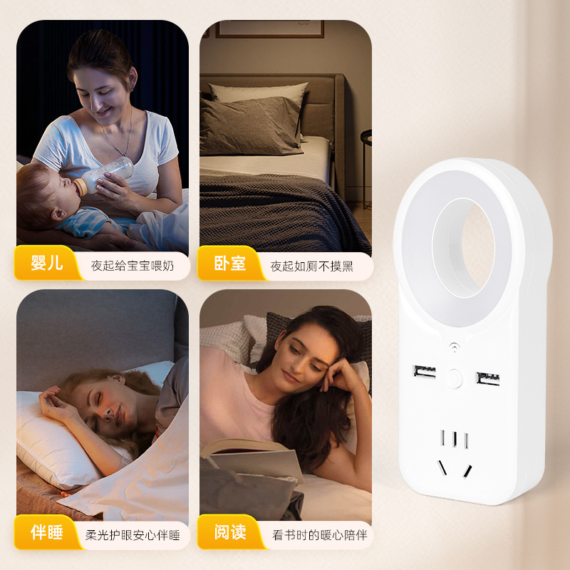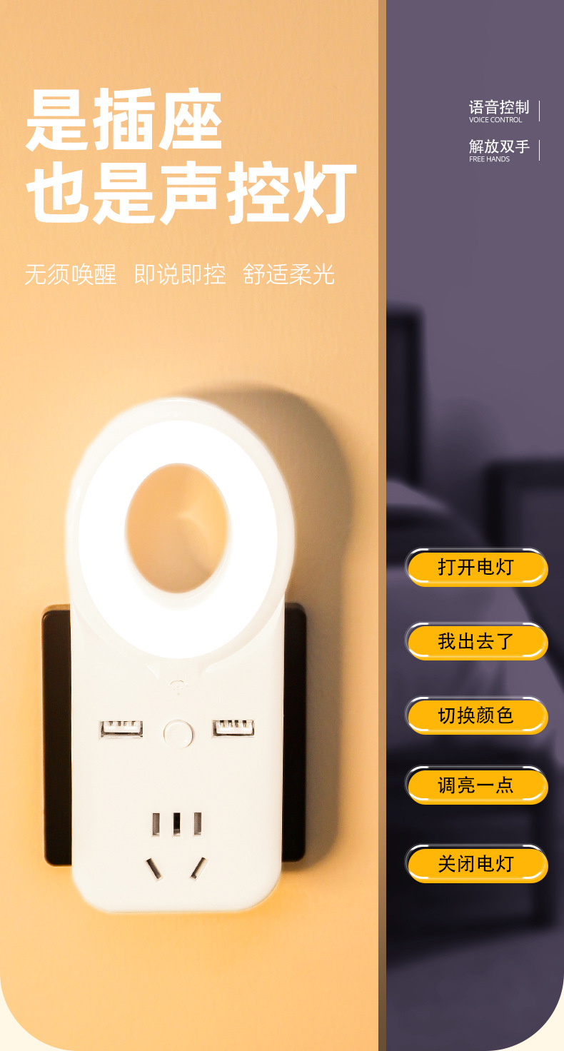 跨境专供遥控LED小夜灯智能感应声控卧室起夜灯LOGO 欧规美规插头