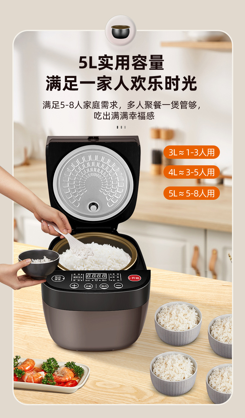 金正电饭锅家用5L智能预约煲饭煮汤蒸煮蒸米饭不粘内胆电饭煲3-5L