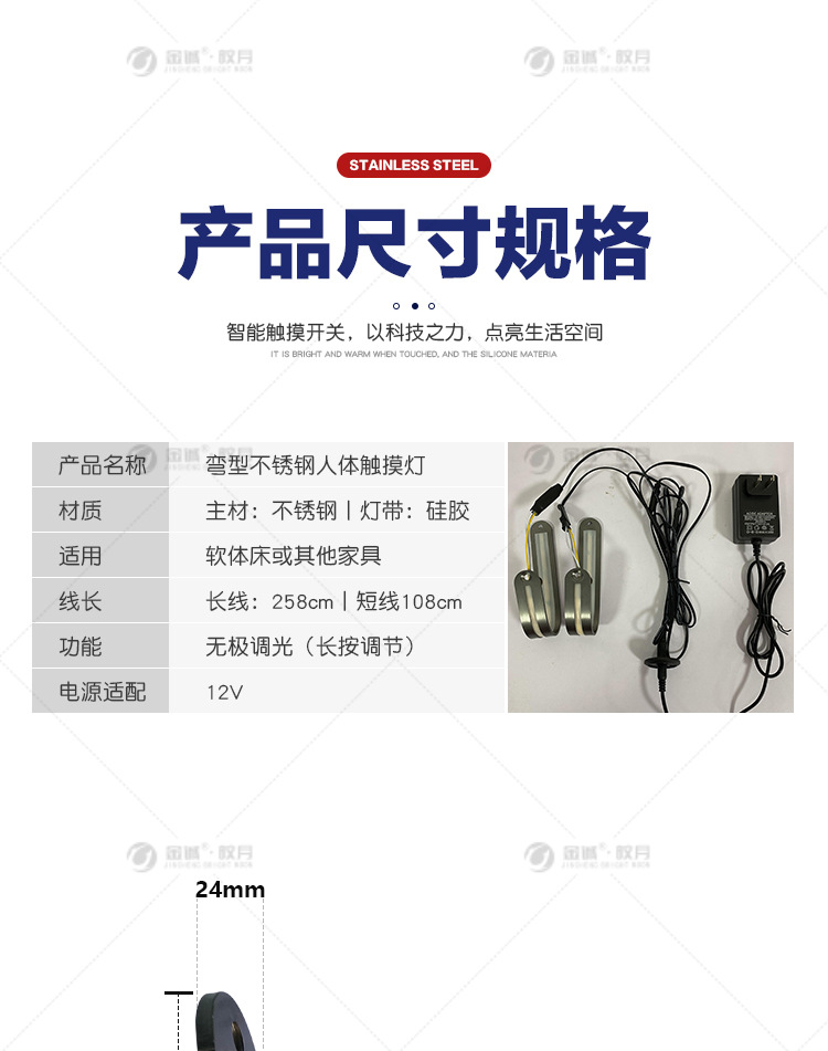 不锈钢触摸人体感应灯智能LED小夜灯软体床触摸灯家具灯饰配件