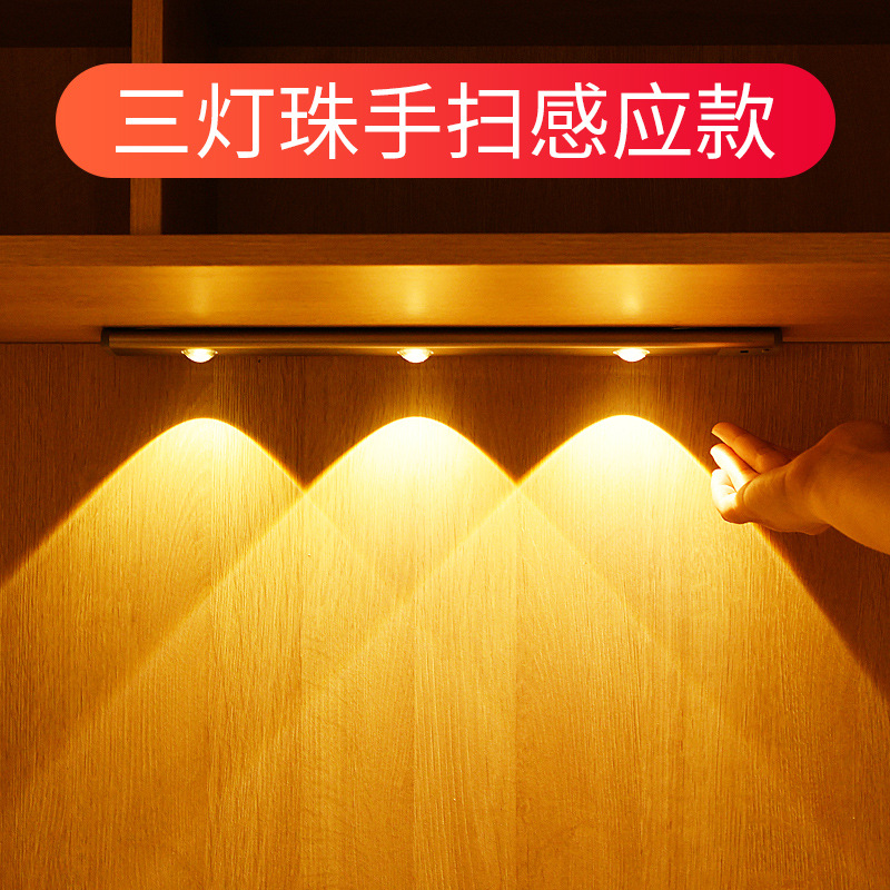 充电人体感应灯触摸手扫带无线衣柜橱柜灯免布线酒柜鞋柜柜底台灯
