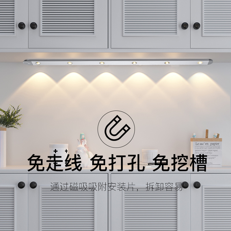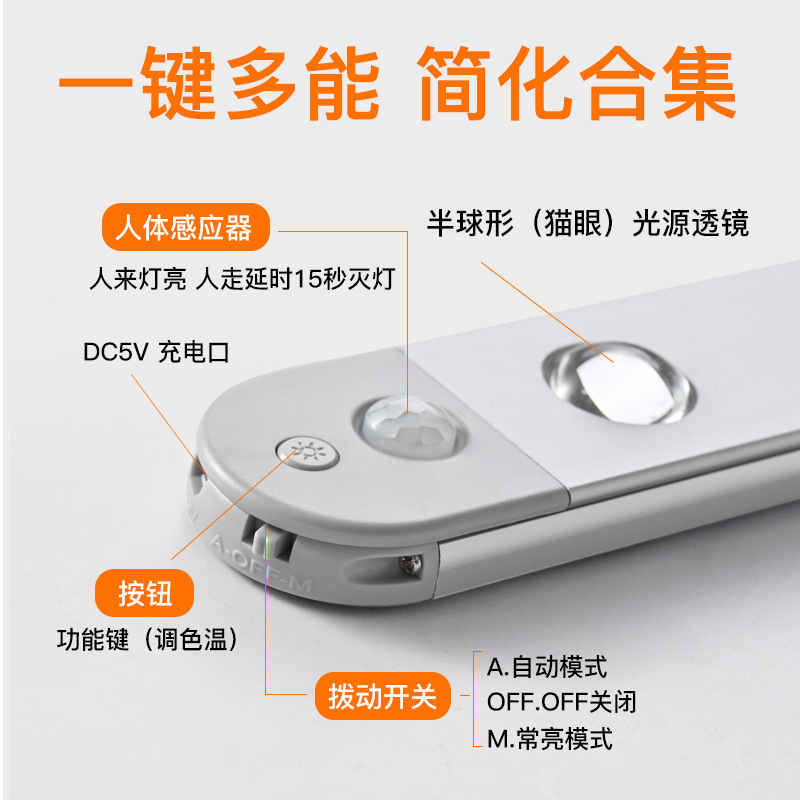 智能人体usb充电自动感应灯猫眼山丘波纹小夜灯LED磁吸衣柜橱柜灯