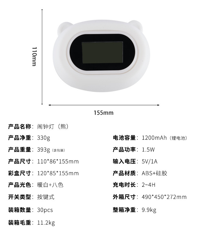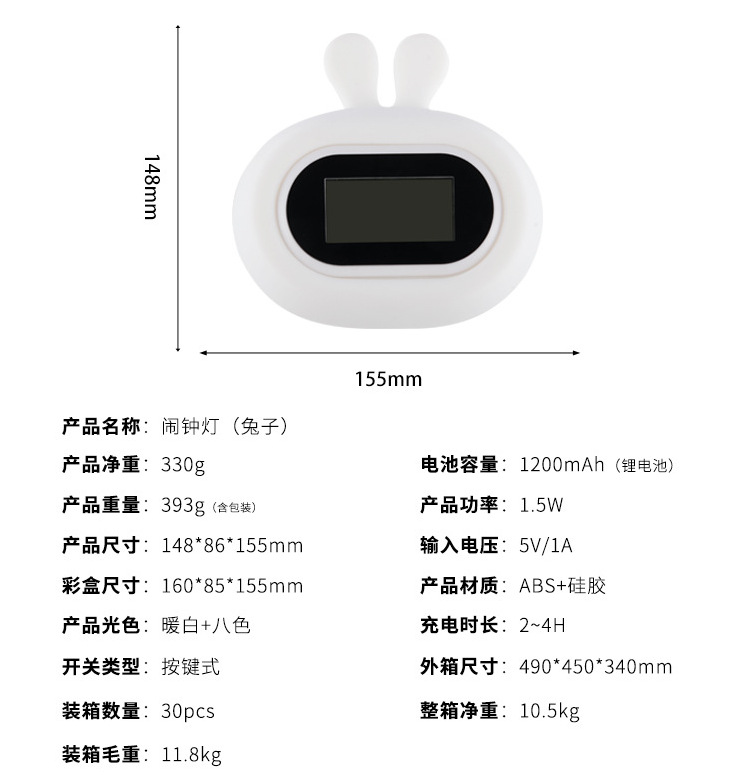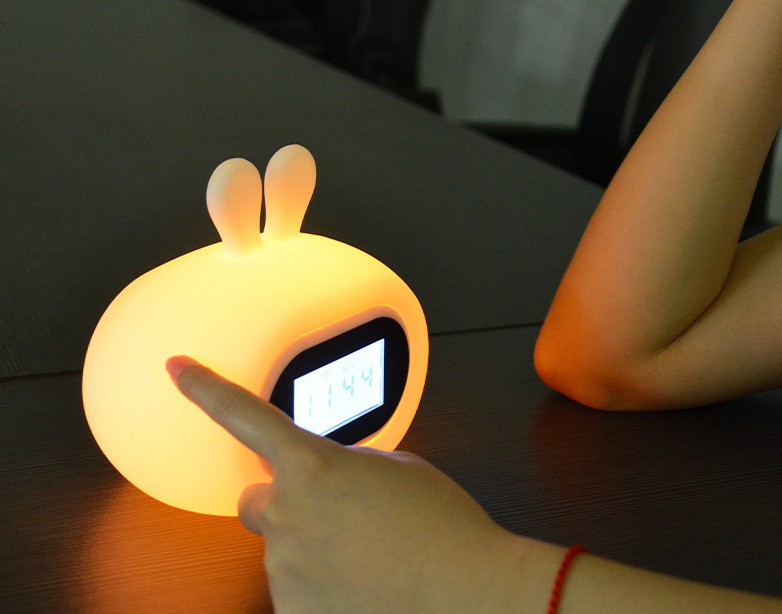 硅胶小夜灯儿童礼品拍拍变色数字显示充电闹钟灯兔熊动物