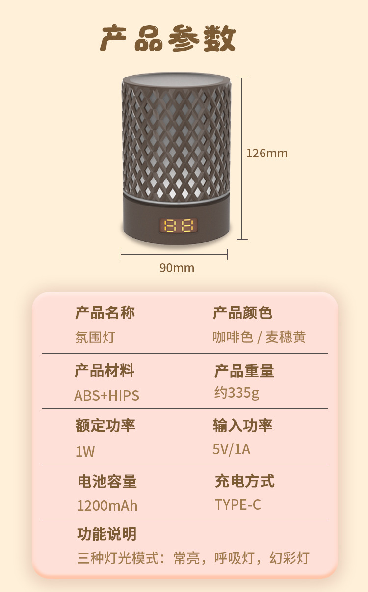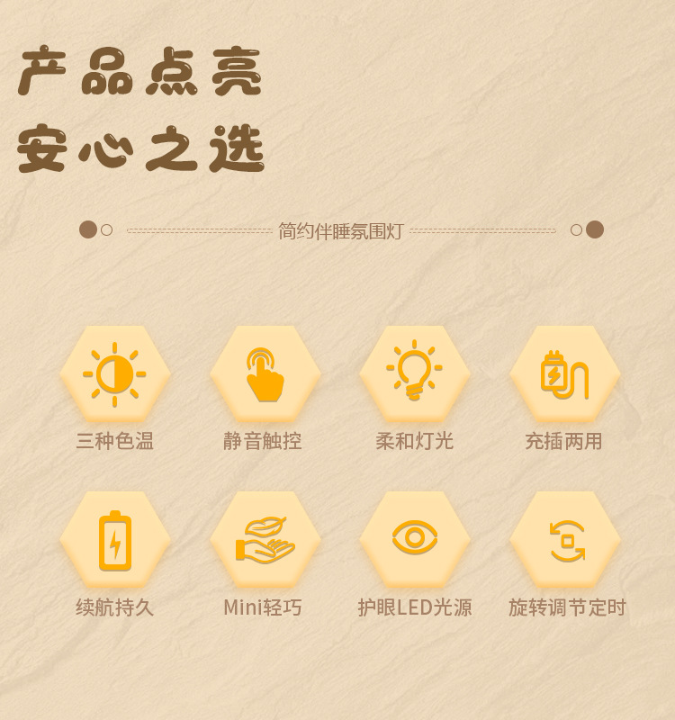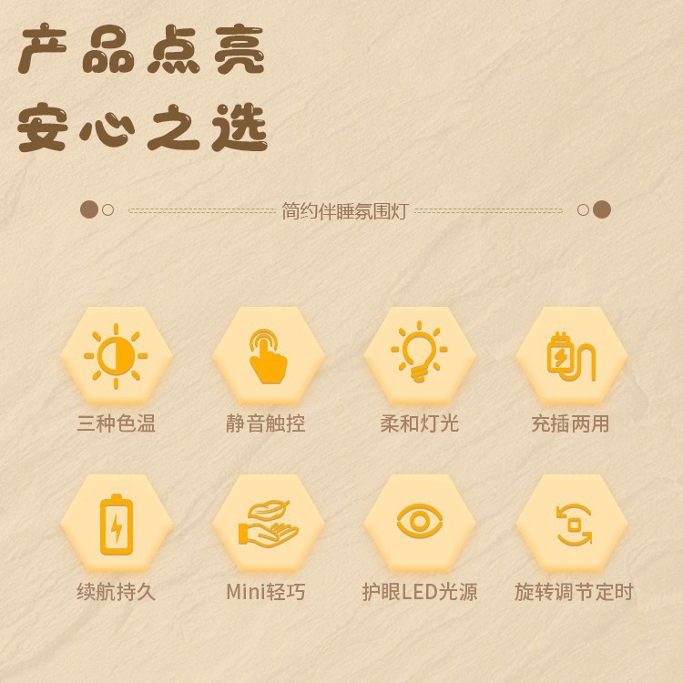 卧室超续航小夜灯婴儿喂奶三档调光灯旋转解压七彩柔光创意床头灯