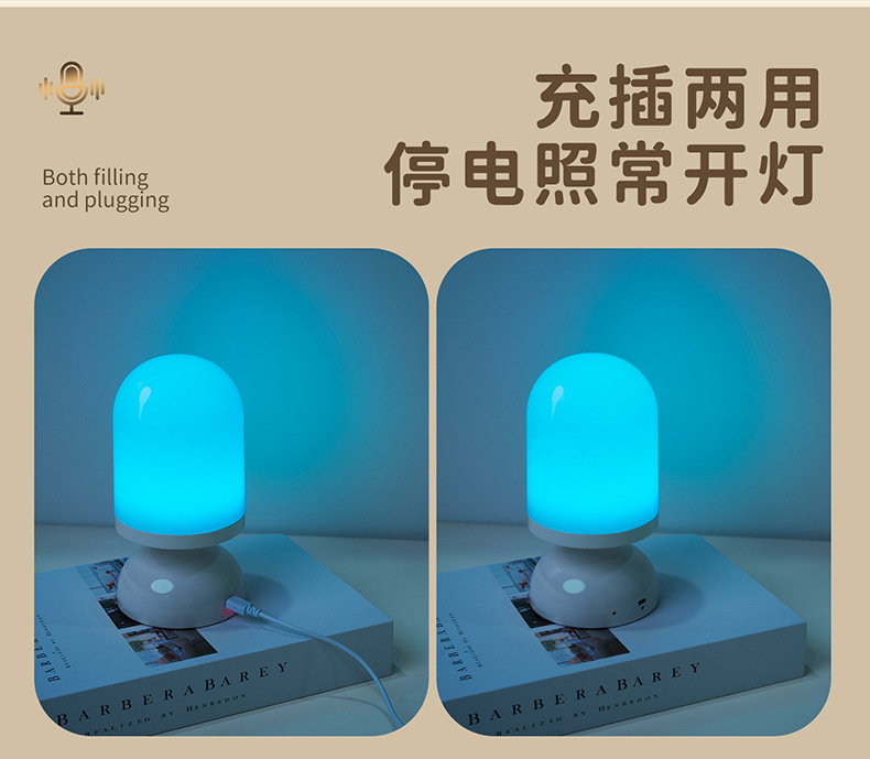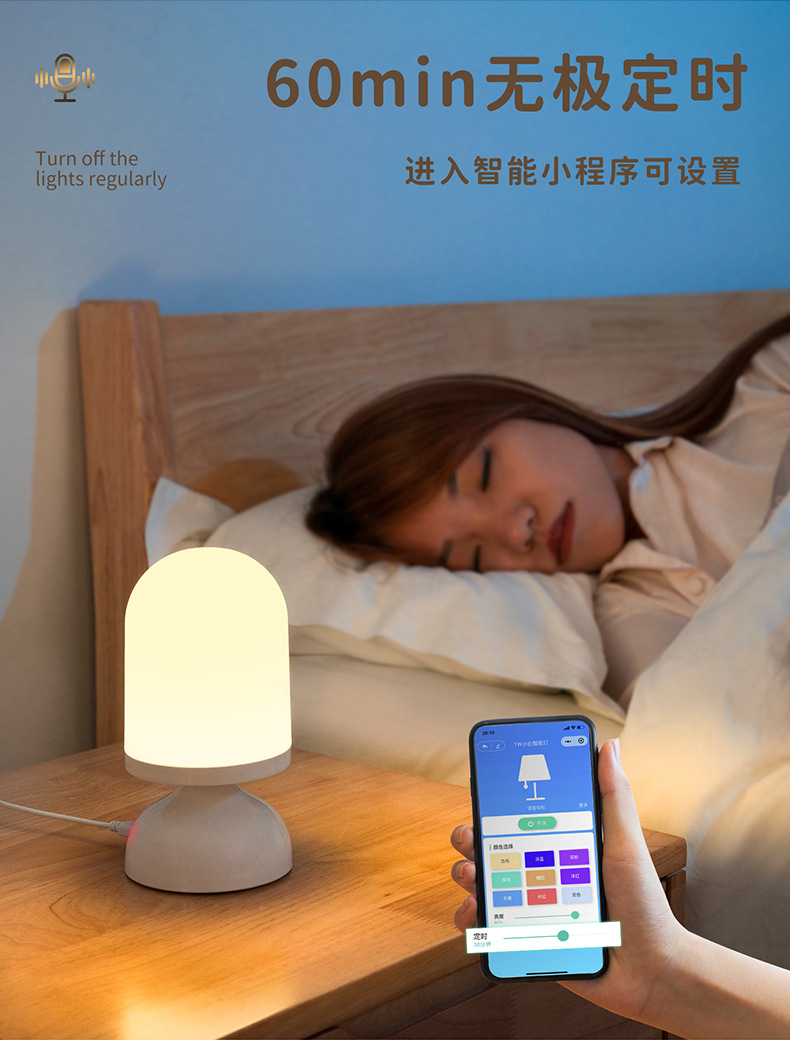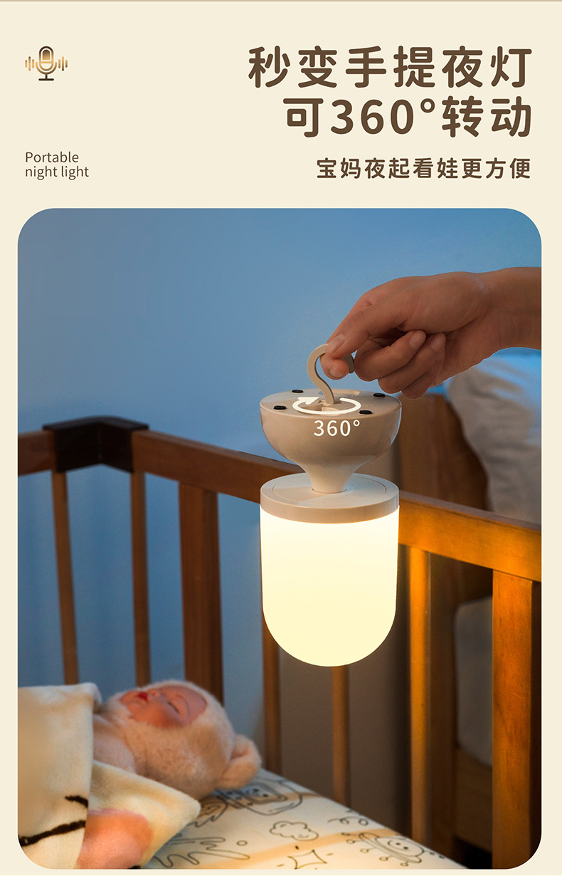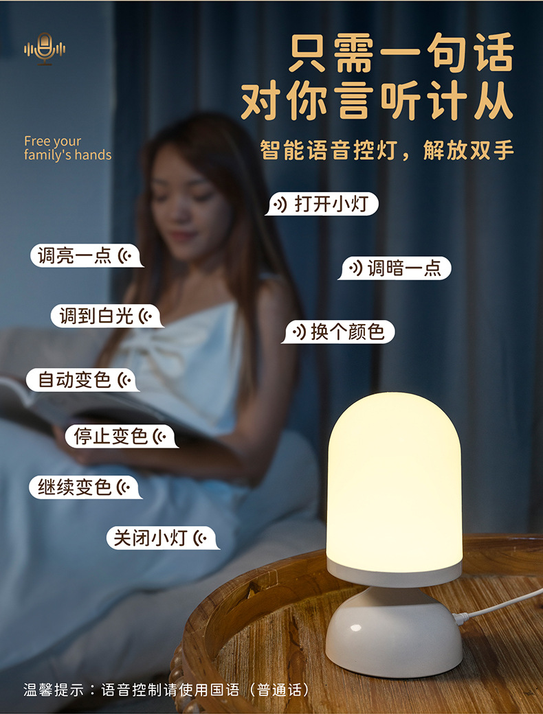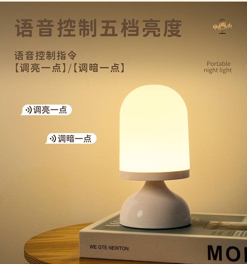 国潮简约创意台灯礼物小白语音控制拍拍灯床头手提七彩无极小夜灯