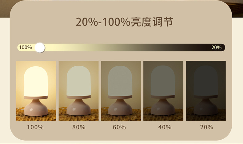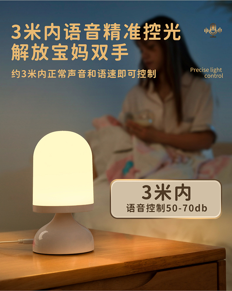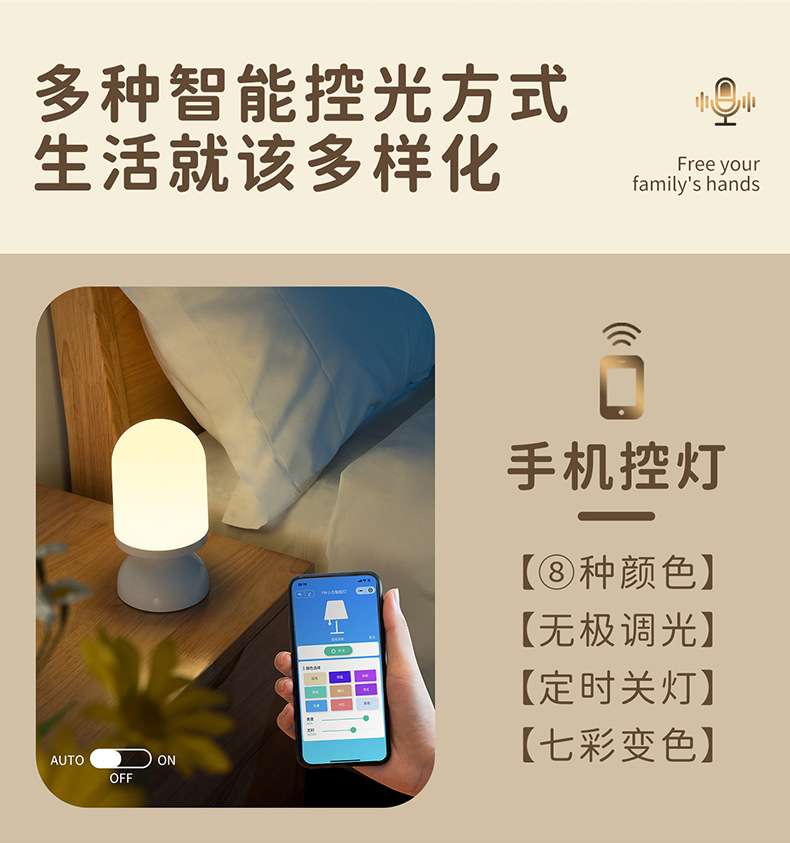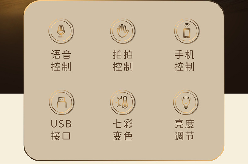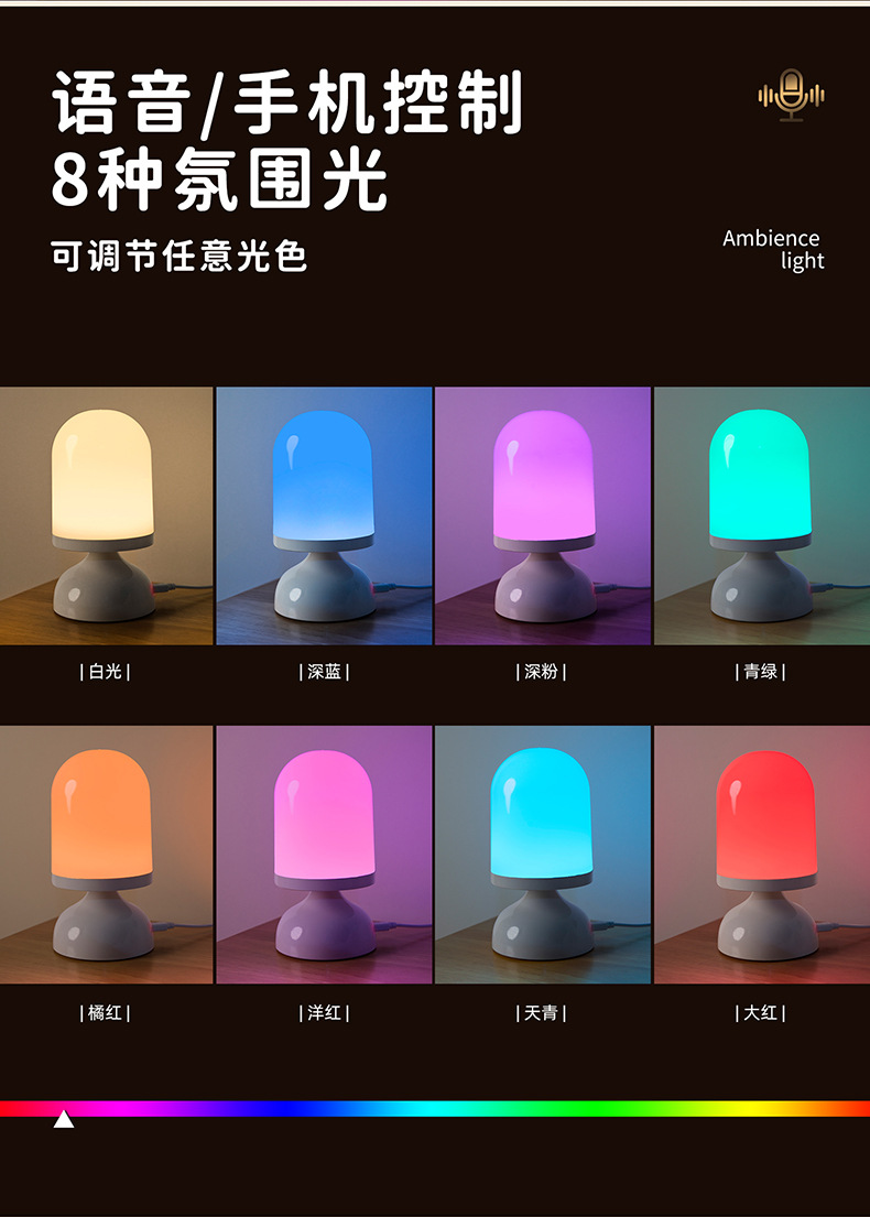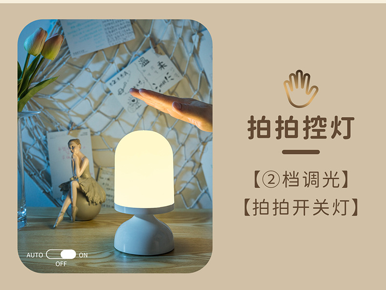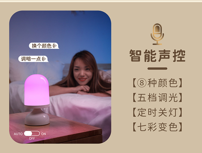 国潮简约创意台灯礼物小白语音控制拍拍灯床头手提七彩无极小夜灯