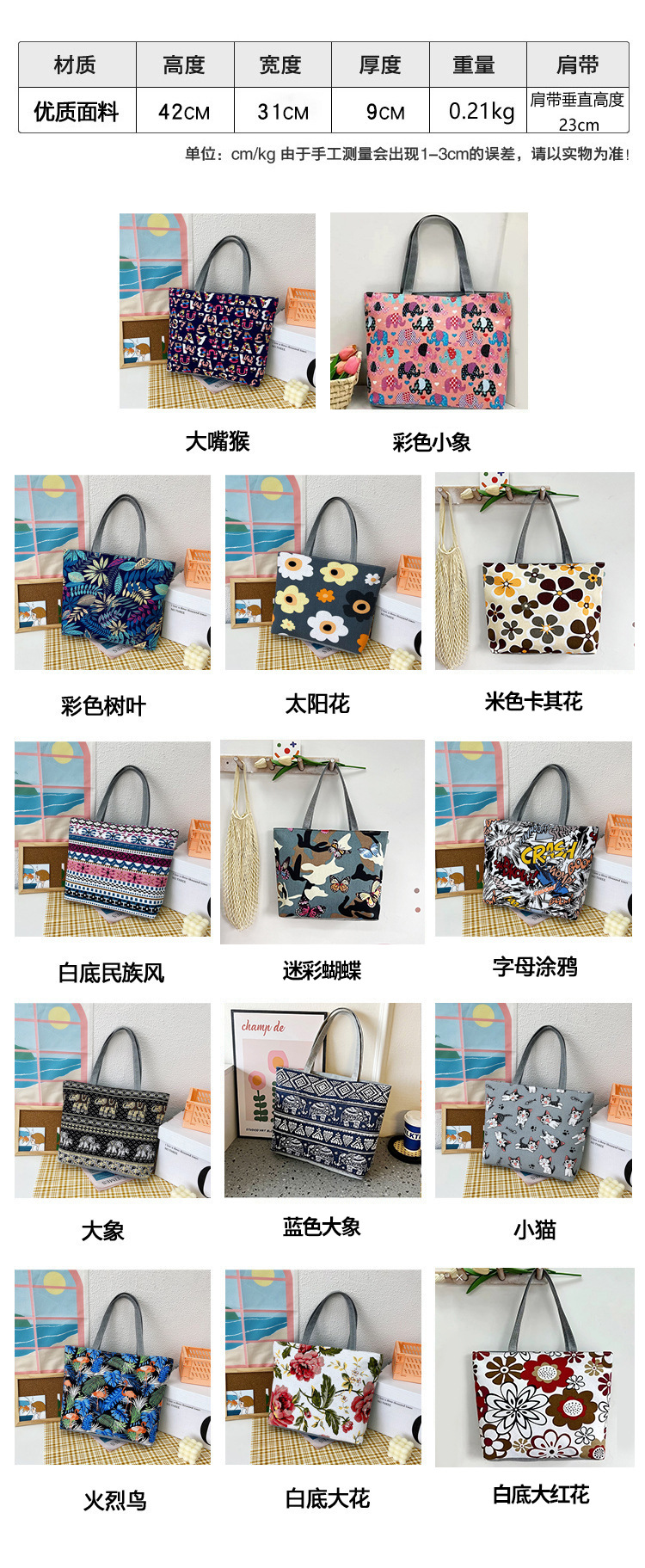 新款帆布包批发大容量单肩女包印花手提包韩版托特包文艺帆布袋