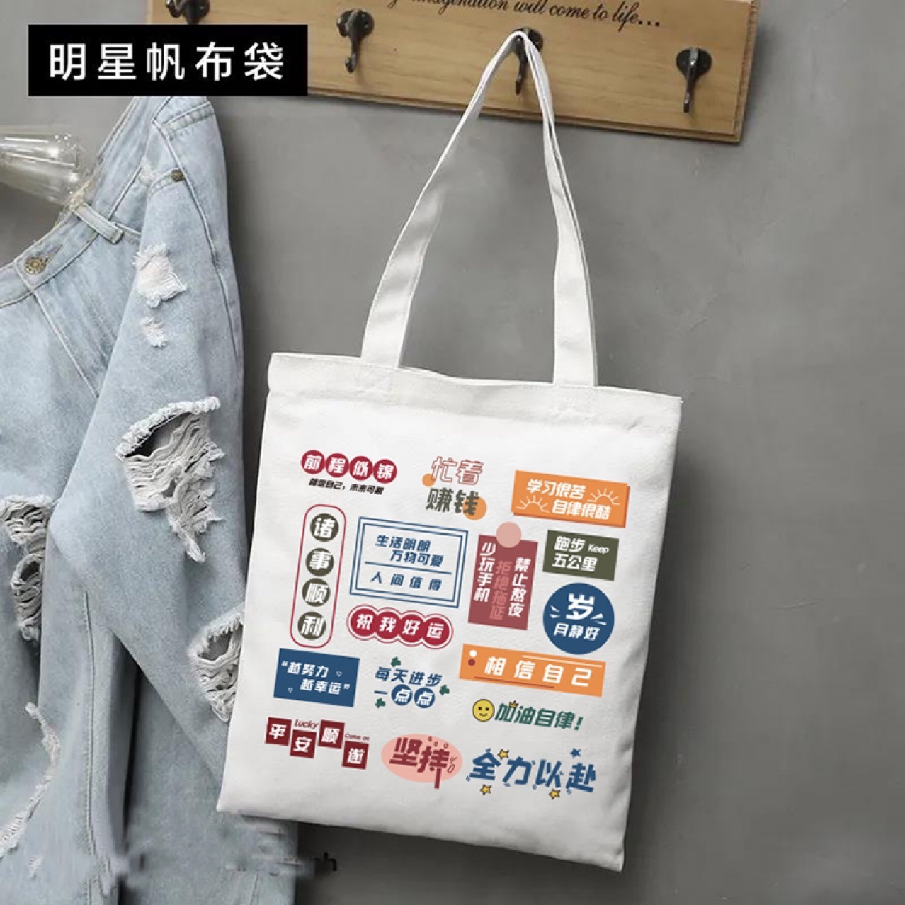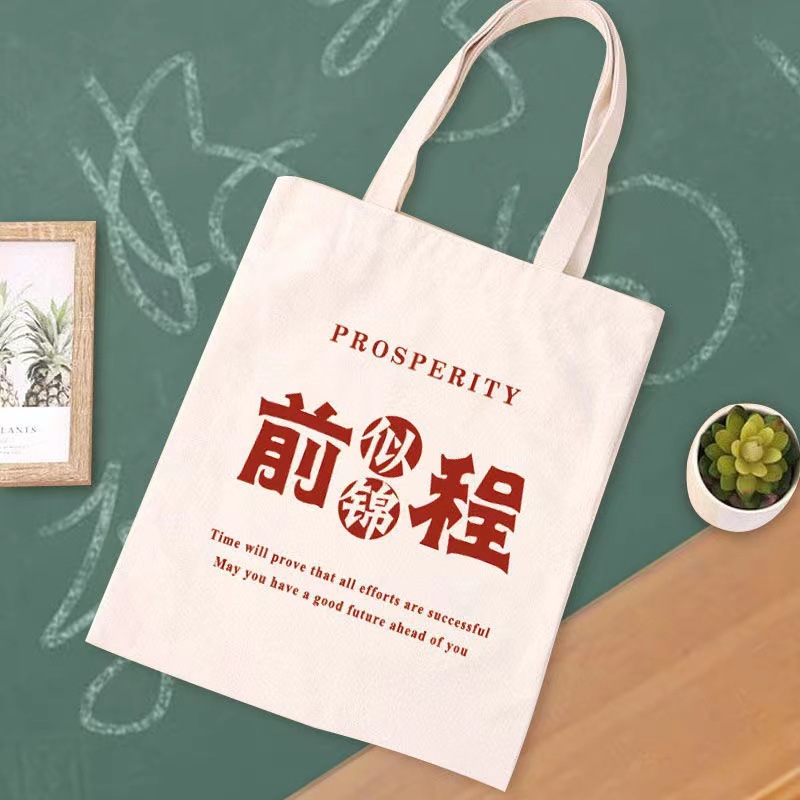 文艺帆布包ins补习袋大容量学生上课单肩书包毕业季培训班手提袋