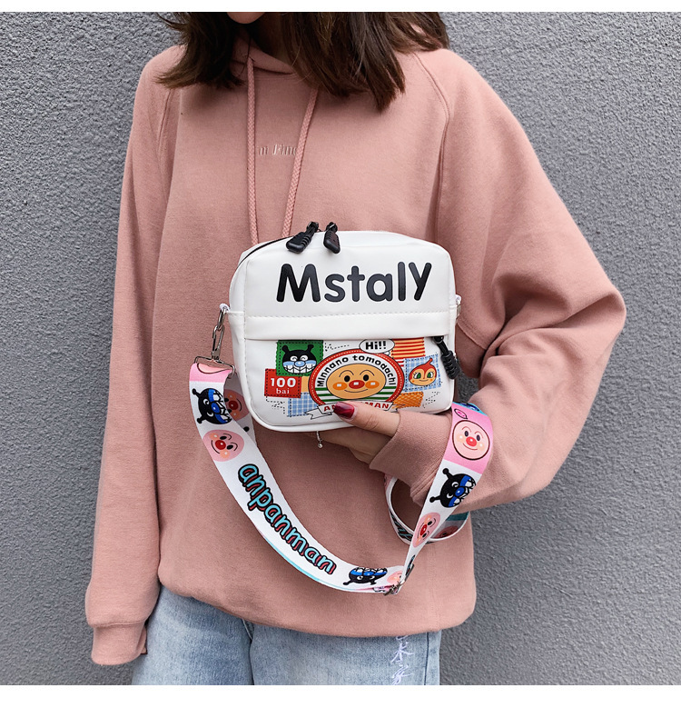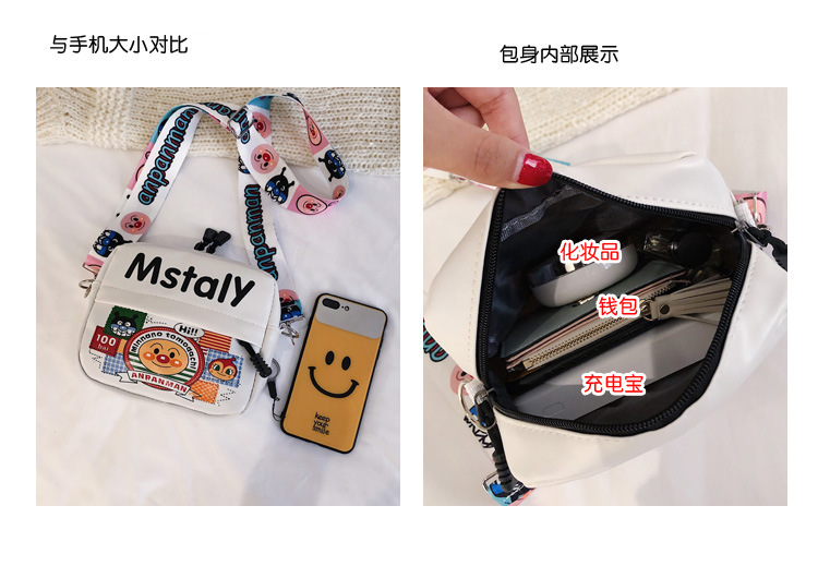 搞怪丑萌小包包女2022新款卡通可爱涂鸦小方包纯色简约单肩斜挎包