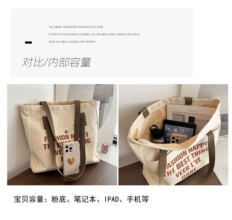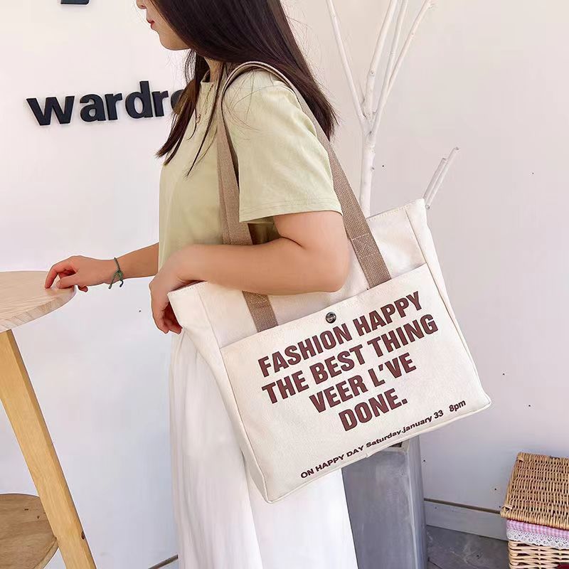 帆布包女ins森系百搭单肩包大容量装书学生上课通勤包手提布袋包