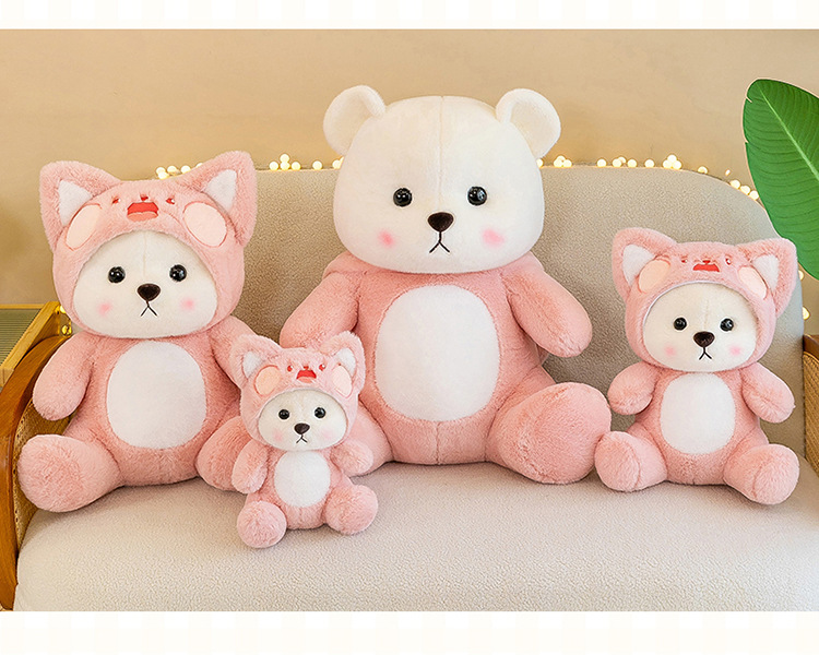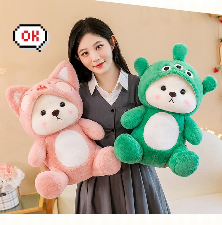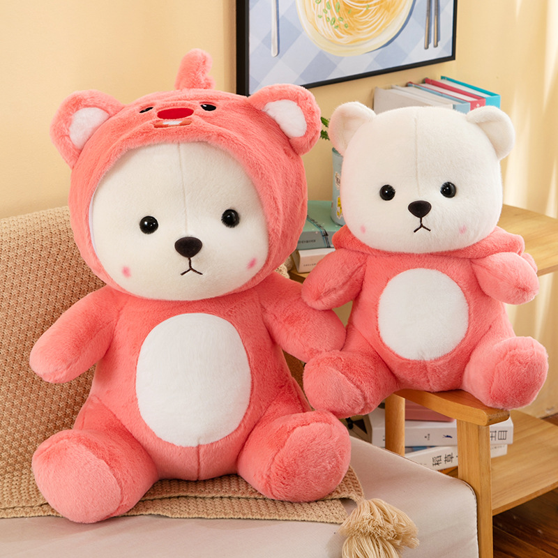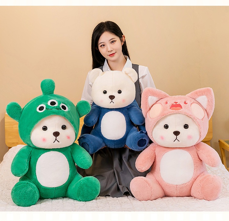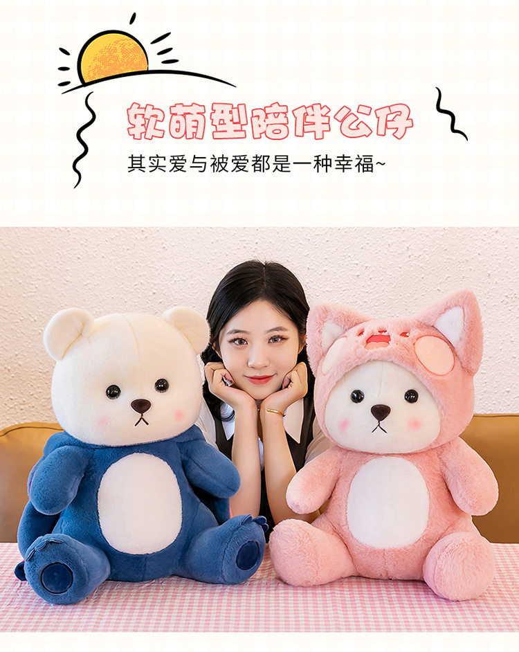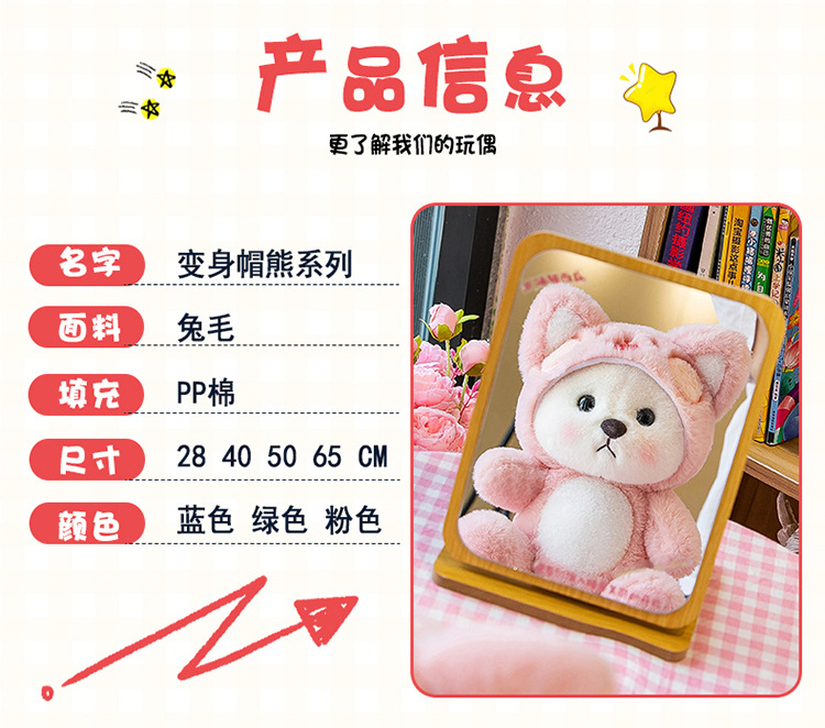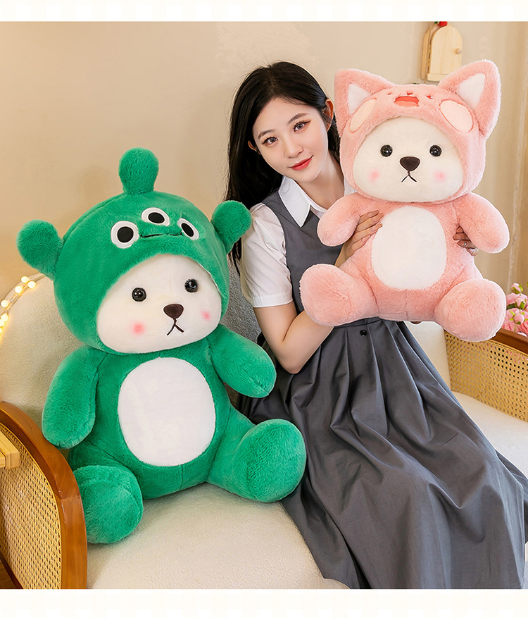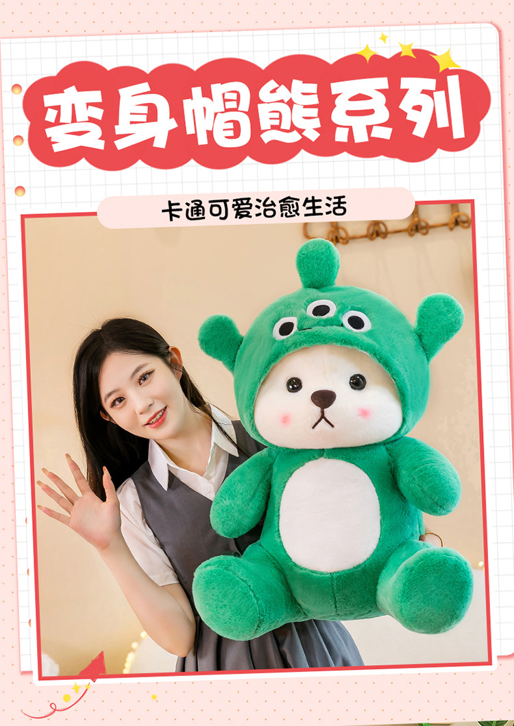 跨境变身小熊毛绒玩具公仔莉莉小熊玩偶带帽子可脱礼物厂家批发