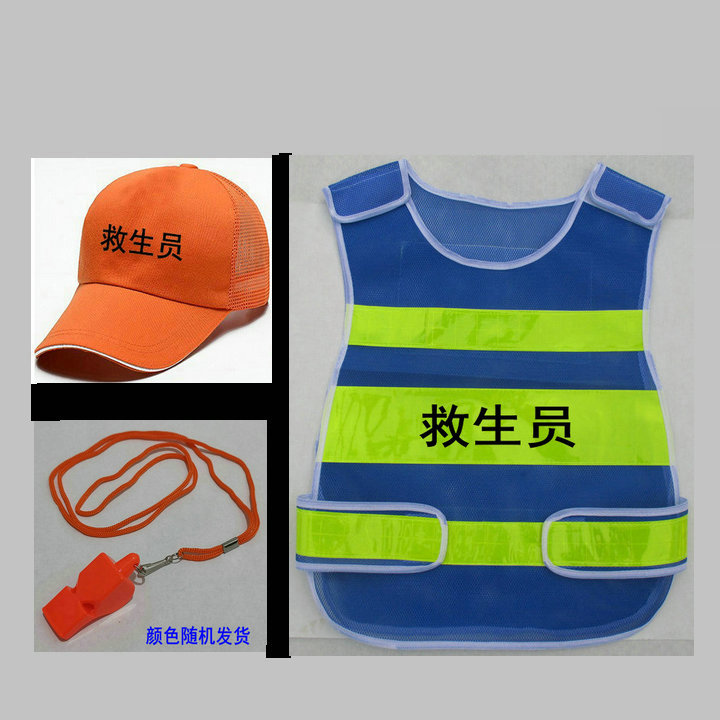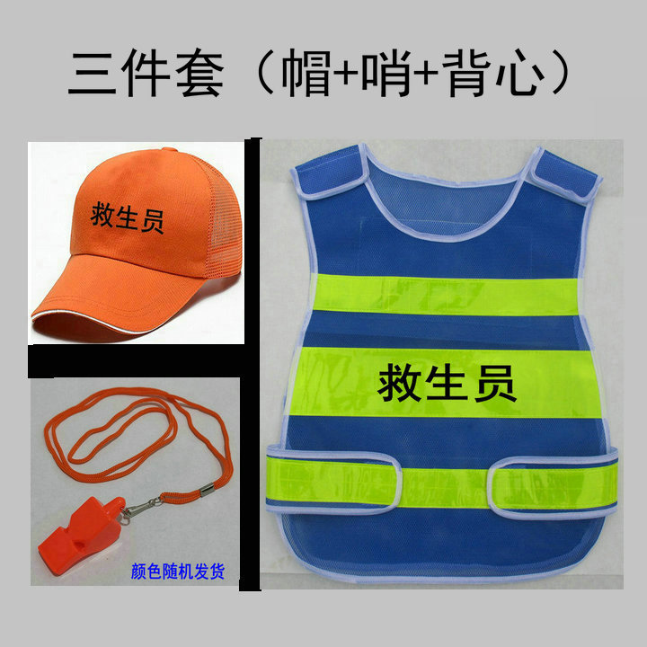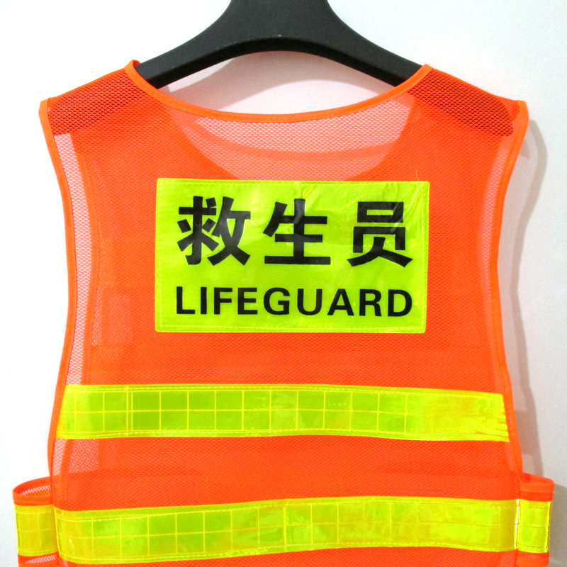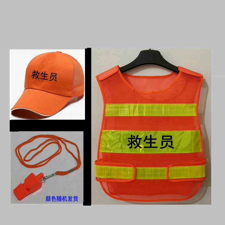 2024款游泳池馆救生员服装帽子马甲反光网状桔红色应急救援哨迪卡