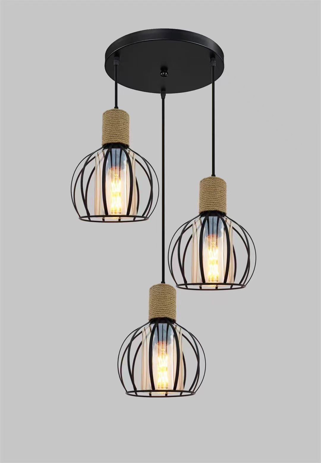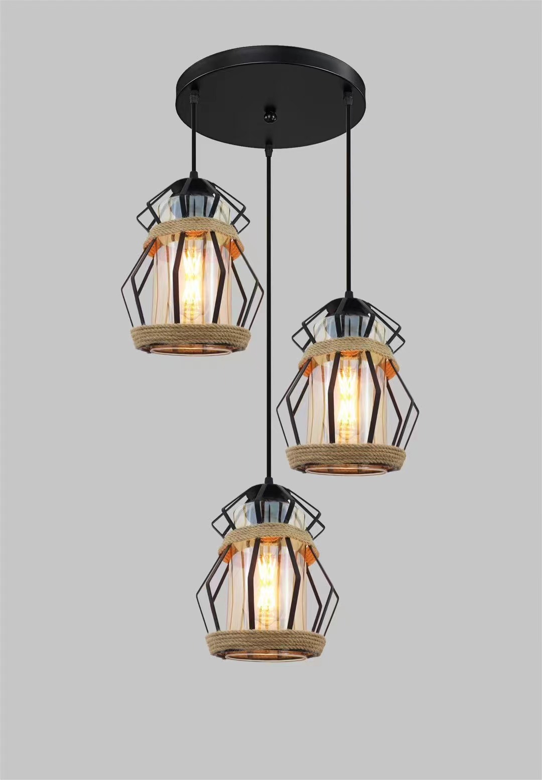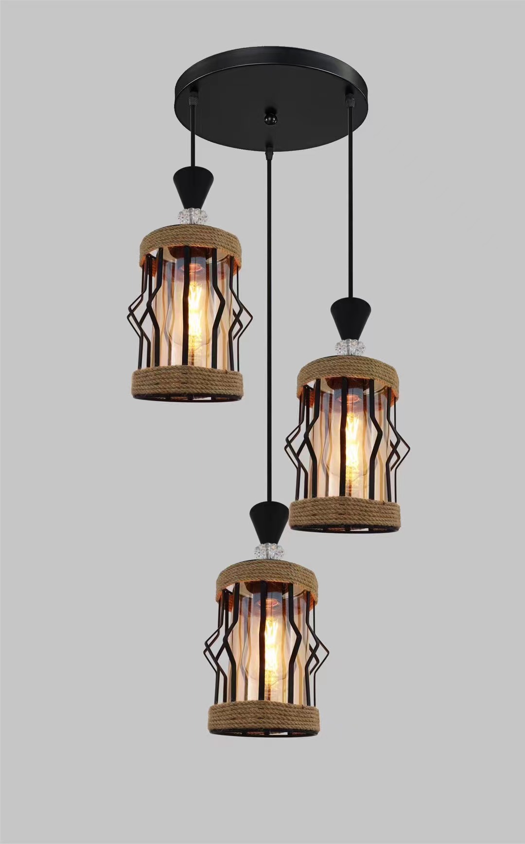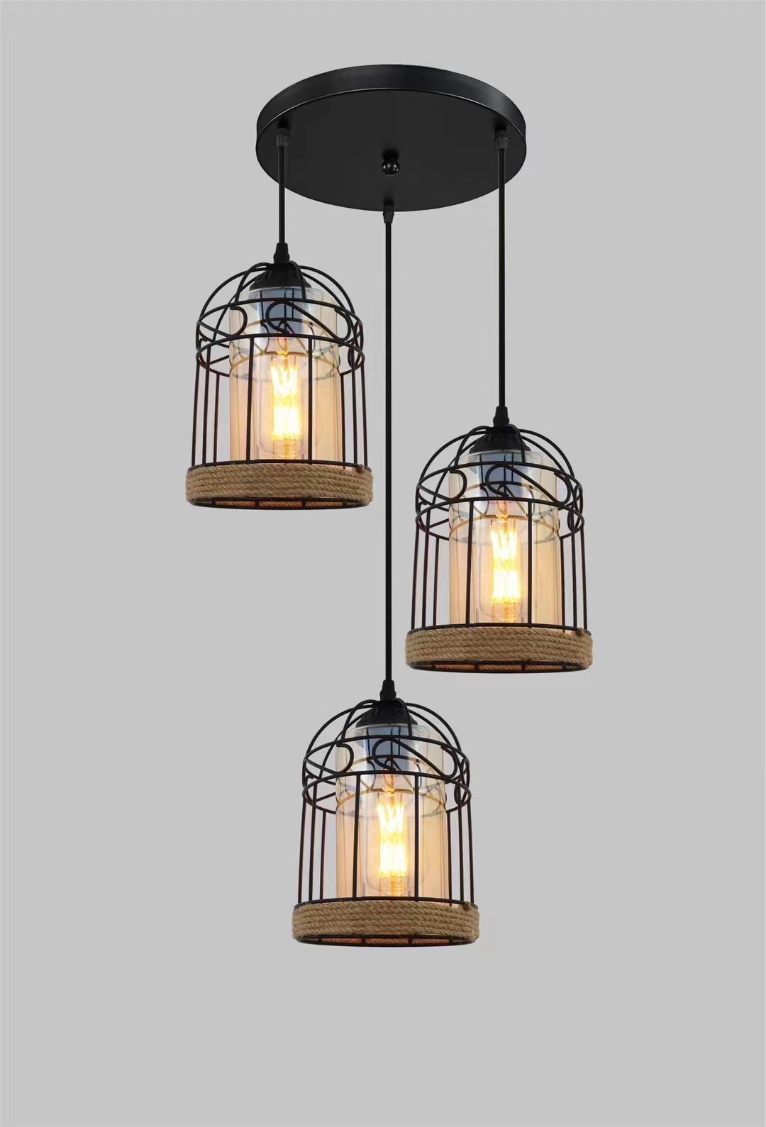 外贸专供loft怀旧工业风三头吧台灯具美式酒吧厅网咖麻绳吊灯