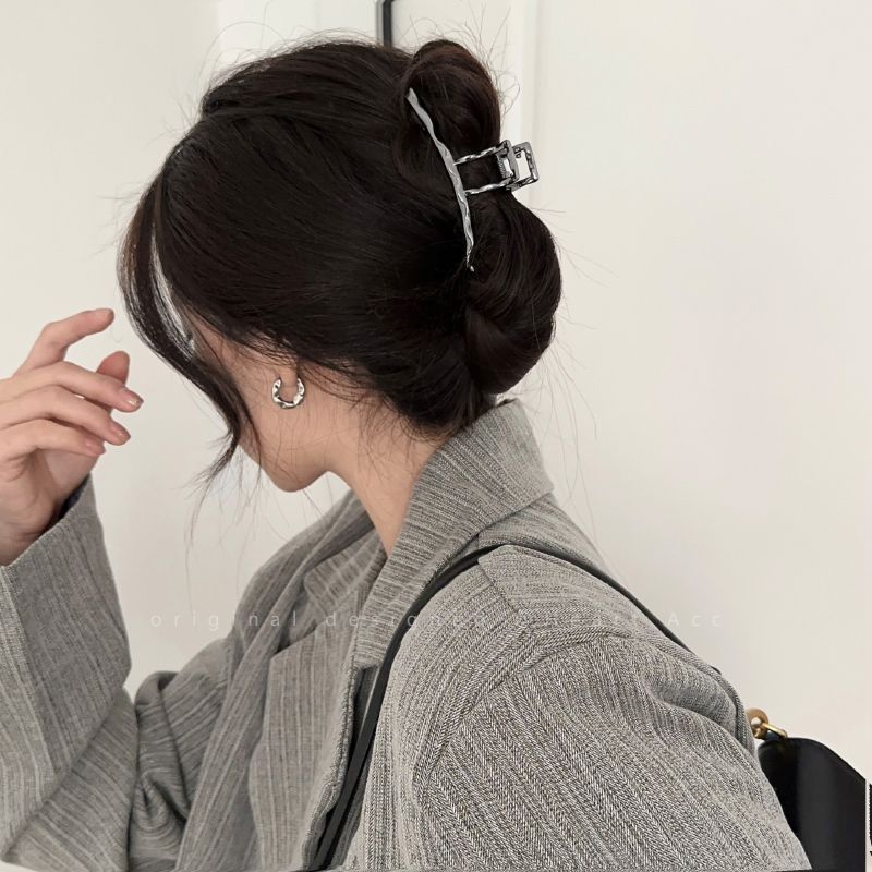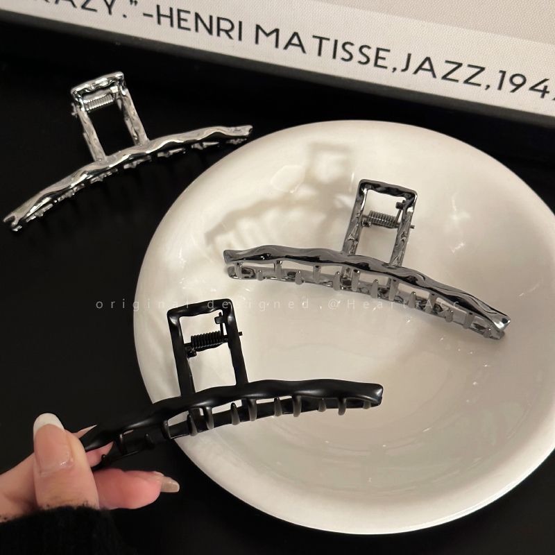 小众设计鲨鱼夹ins风金属一字抓夹女大号盘发夹