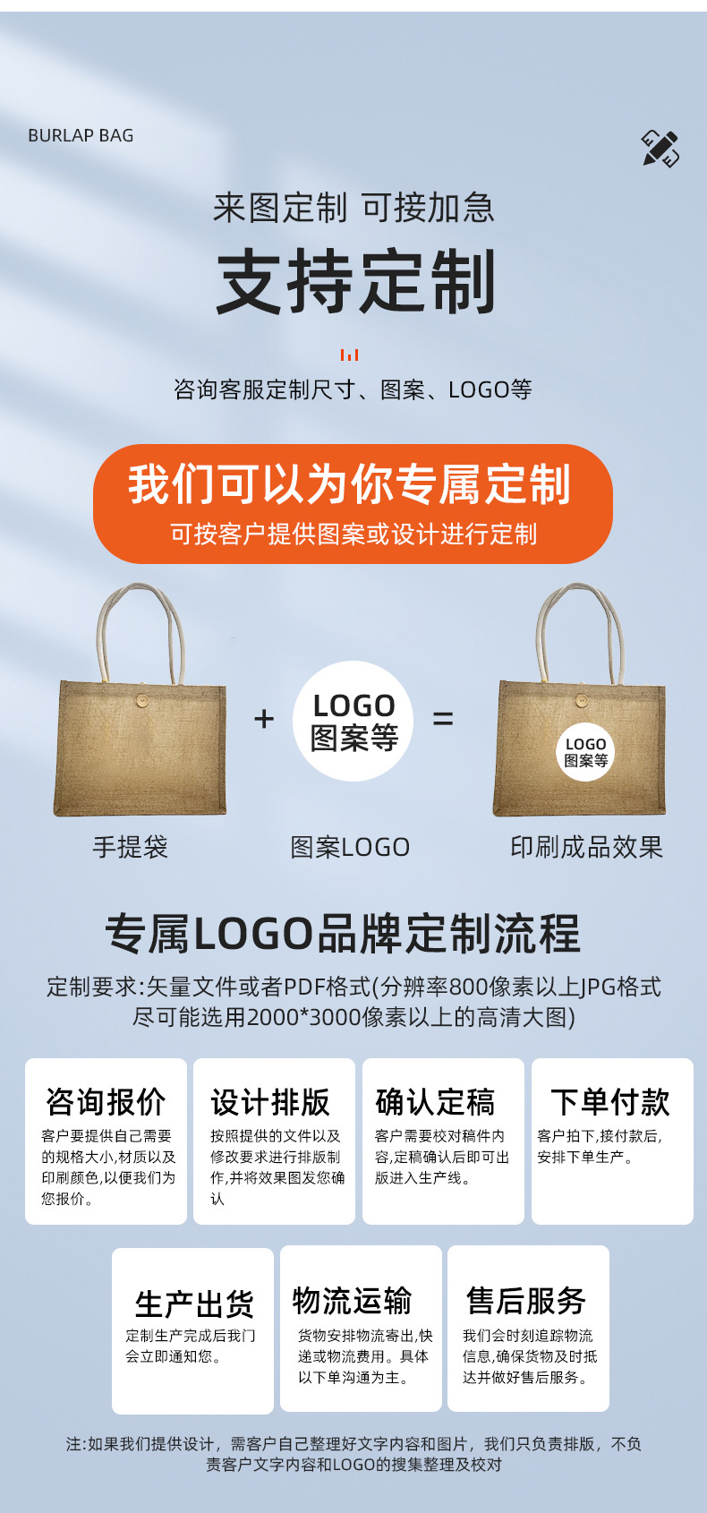 麻布袋亚麻手提袋环保购物袋大容量黄麻覆膜包印广告logo厂家批发